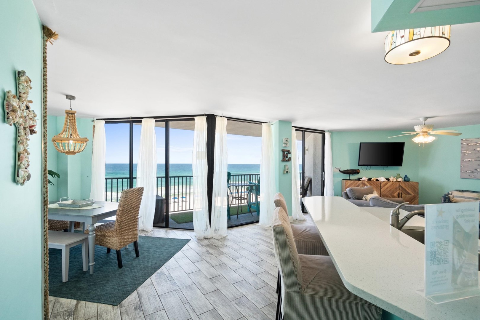 Welcome to AquaVista 403E, a 2-bedroom, 2-bathroom direct beachfront condo in Panama City Beach, Florida, by Panhandle Getaways. With 19 feet of glass framing breathtaking Gulf views, this family-friendly vacation rental combines comfort, convenience, and the perfect location just one mile from Pier Park.