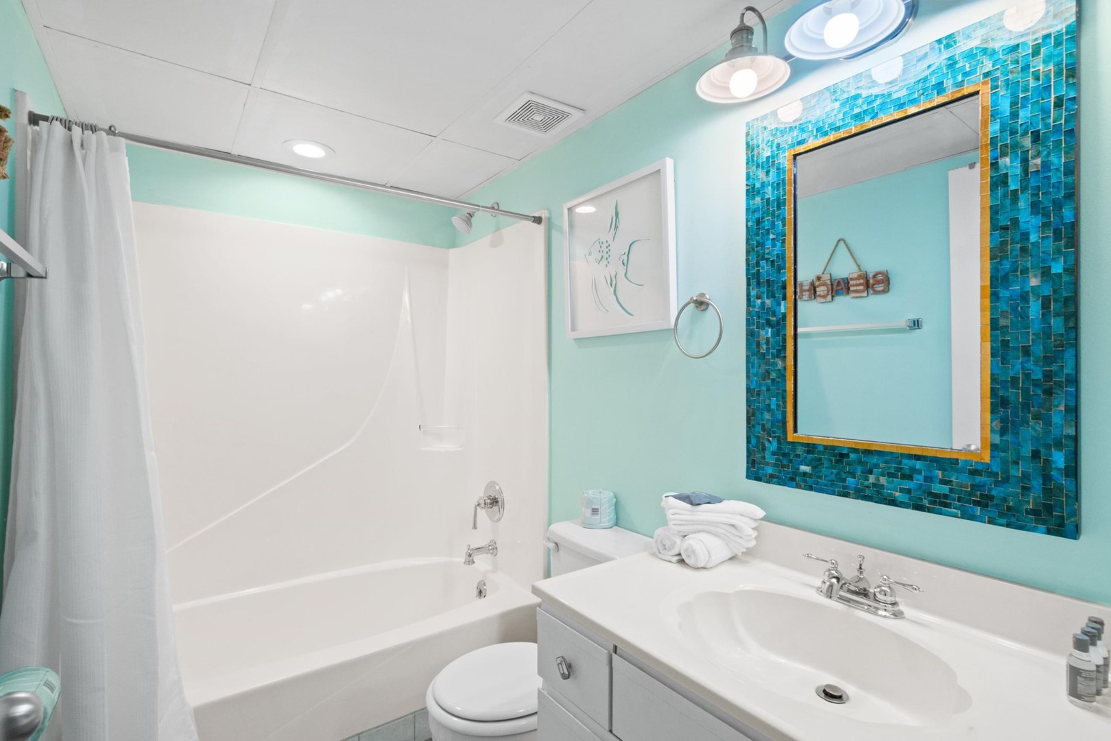 A starter set of toiletries, paper products, and detergents is provided for your arrival. Guests should plan to purchase additional supplies for the rest of their stay. Bed linens and bath towels are included; please bring beach towels for pool and beach use.