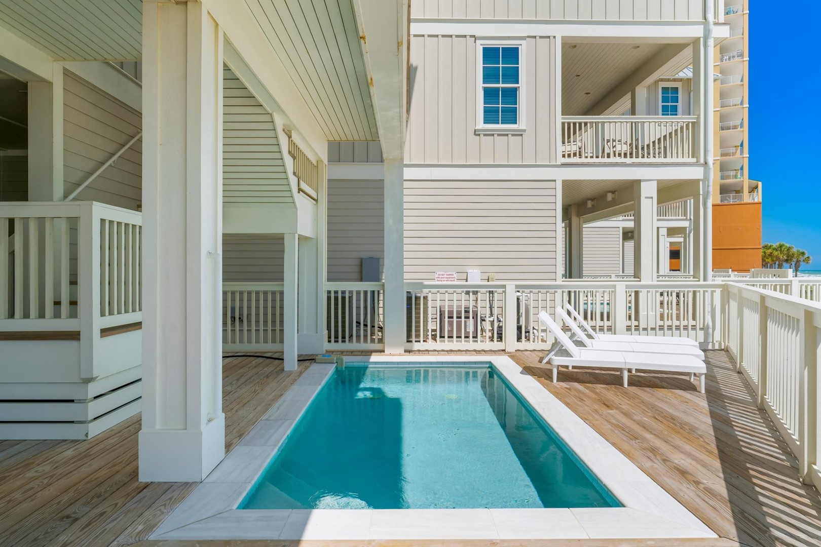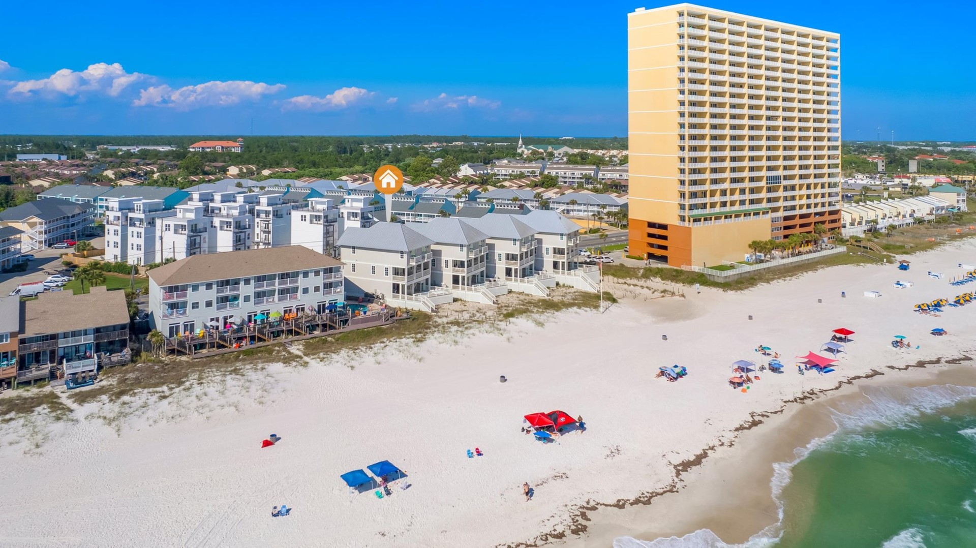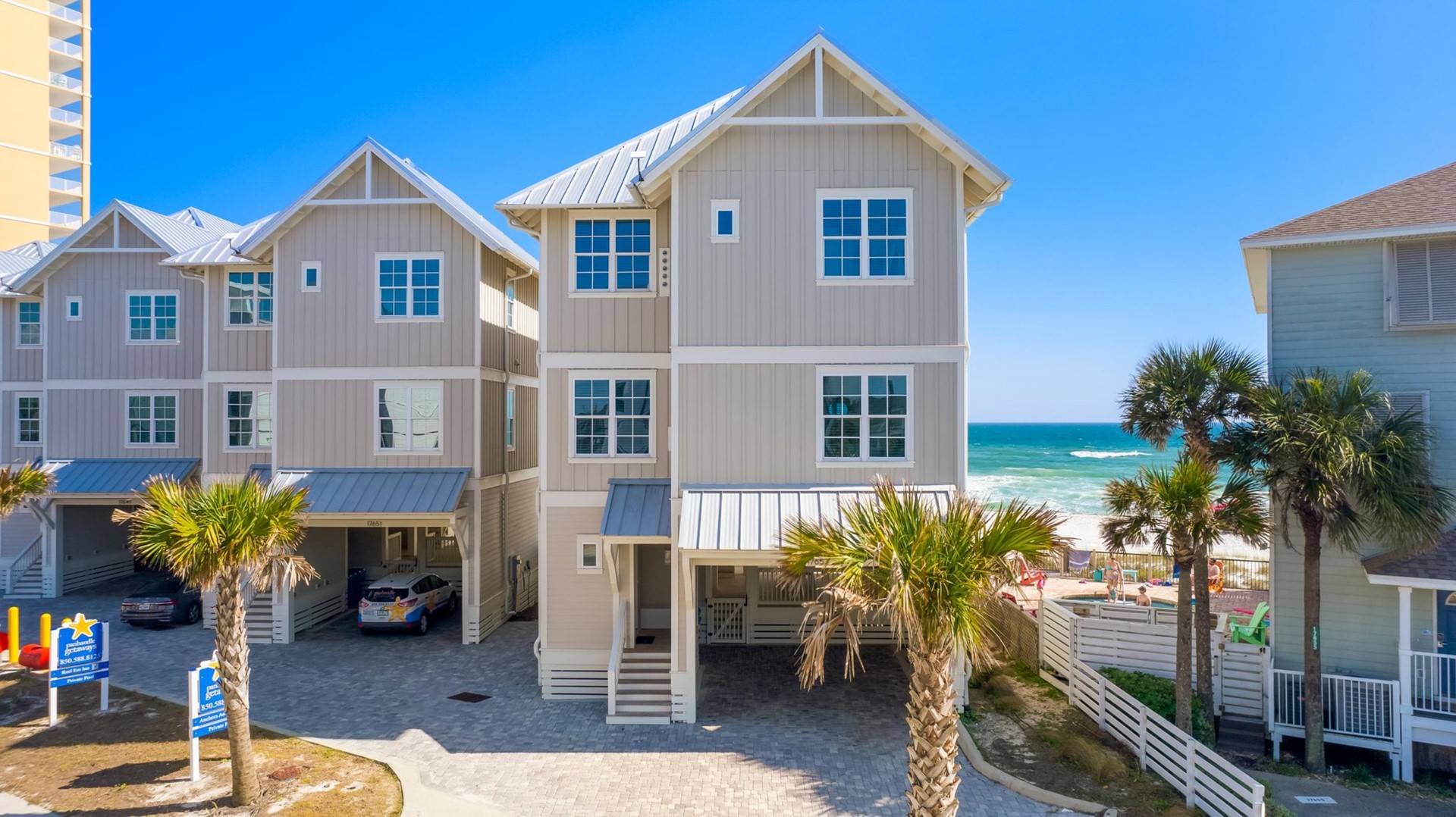Beach House rental with private pool, Anchors Aweigh, located in Panama City Beach, FL by Panhandle Getaways is a direct beachfront 5 bedroom, 5 bathroom vacation home with private pool and is complete with all of the conveniences of home. Private Pool