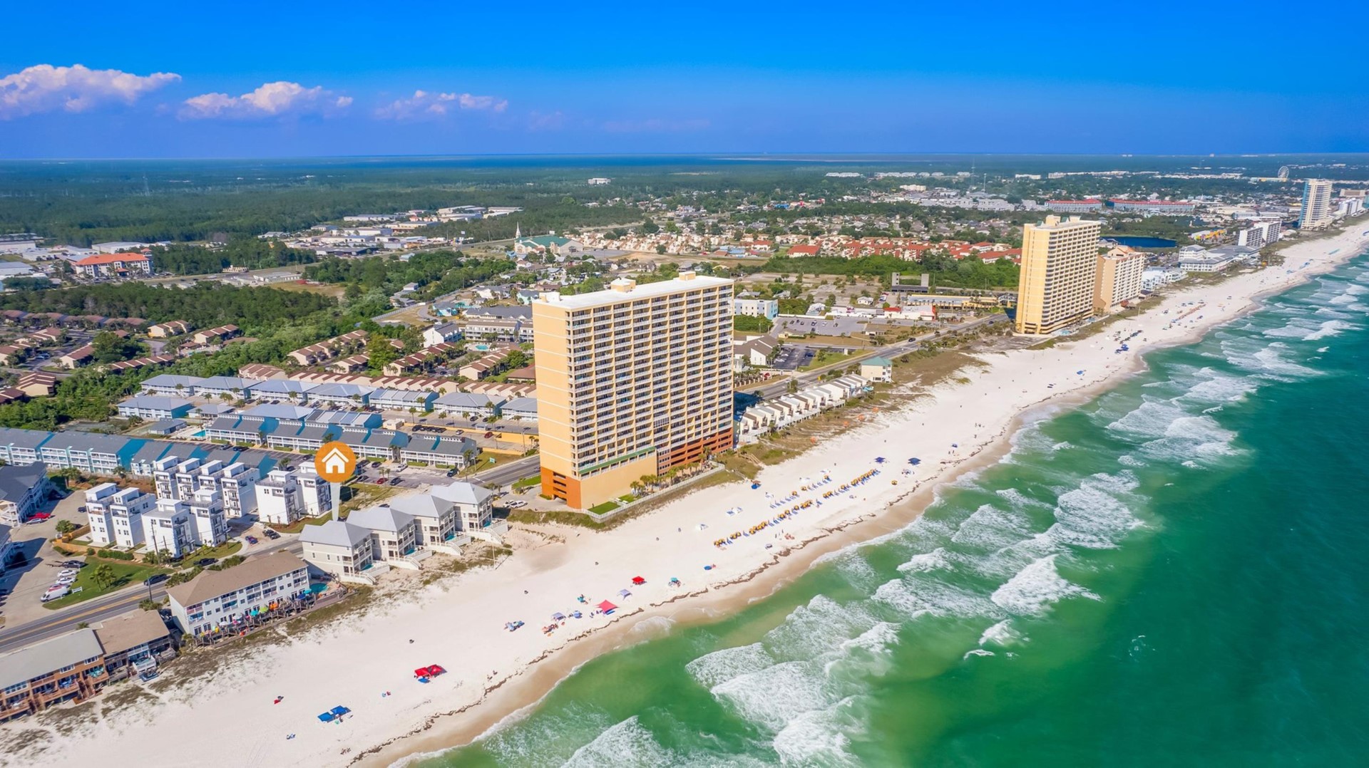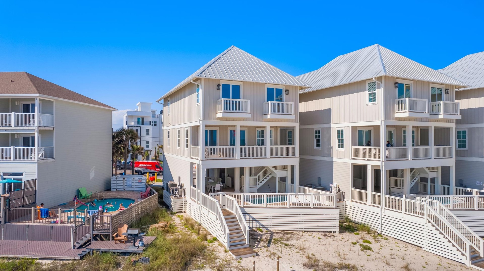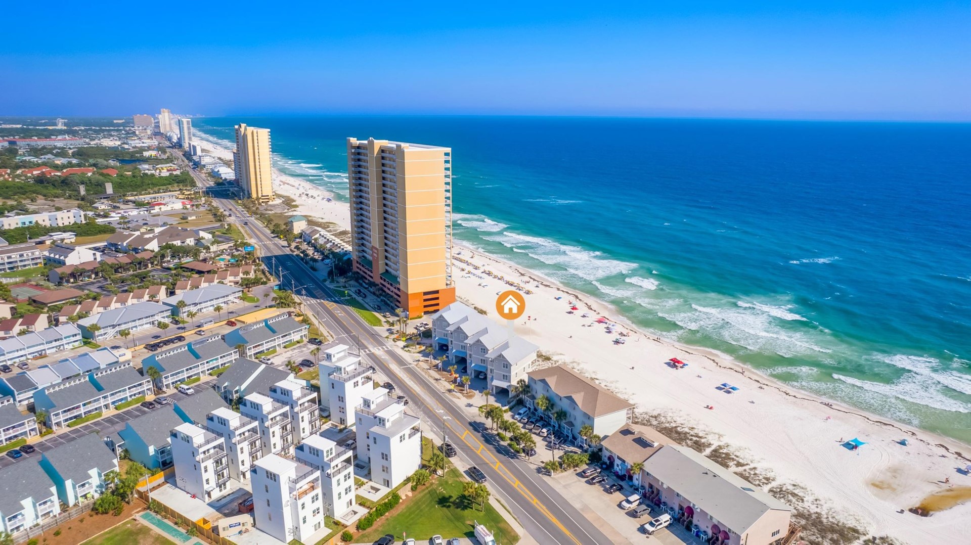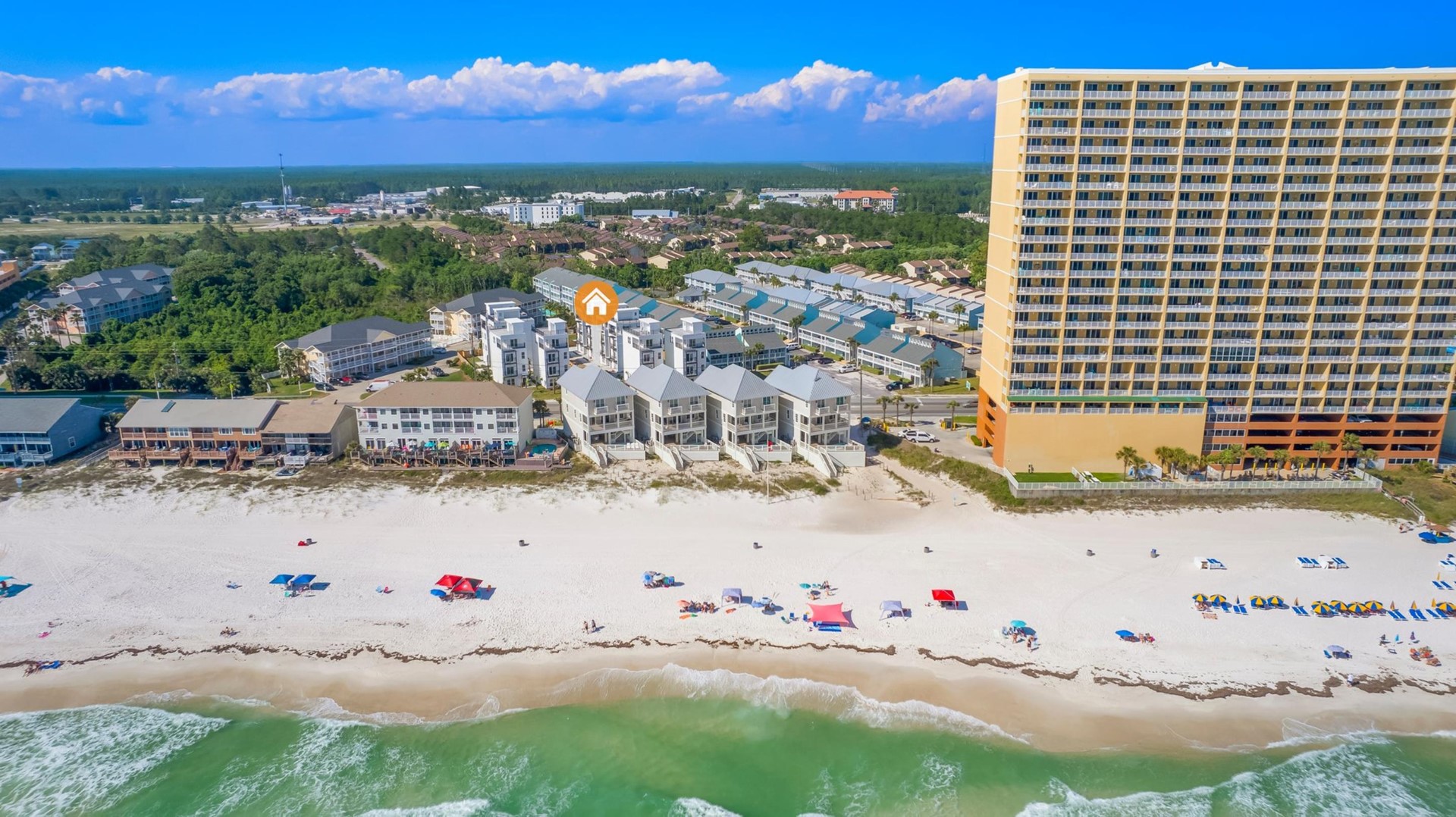 Beach House rental with private pool, Anchors Aweigh, located in Panama City Beach, FL by Panhandle Getaways is a direct beachfront 5 bedroom, 5 bathroom vacation home with private pool and is complete with all of the conveniences of home. Private Pool