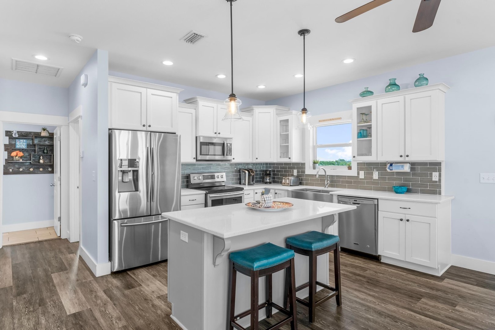 Pet friendly beach house rental, Beach Hop, located in Cape San Blas, FL by Panhandle Getaways is a 5 bedroom, 4 bathroom vacation home with private pool and complete with all of the conveniences of home.