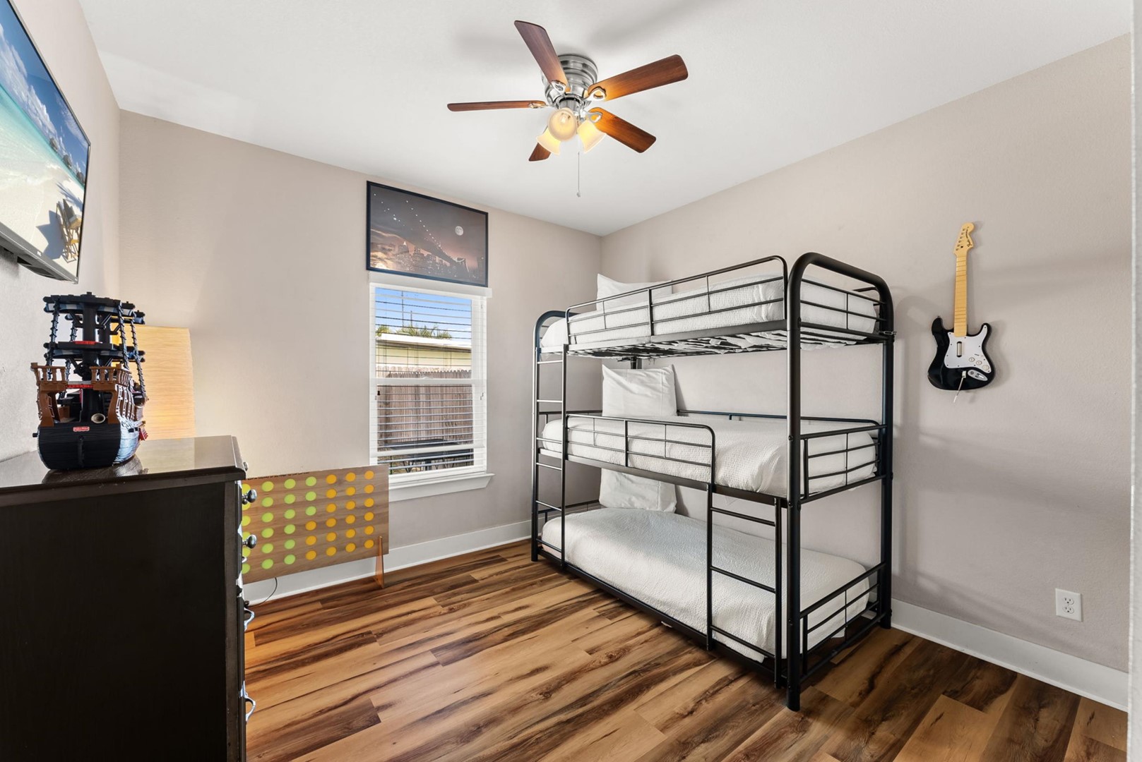 • Bedroom 4: Twin-over-twin-over-twin bunk bed, Smart TV
