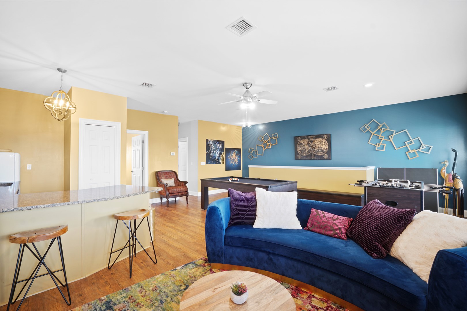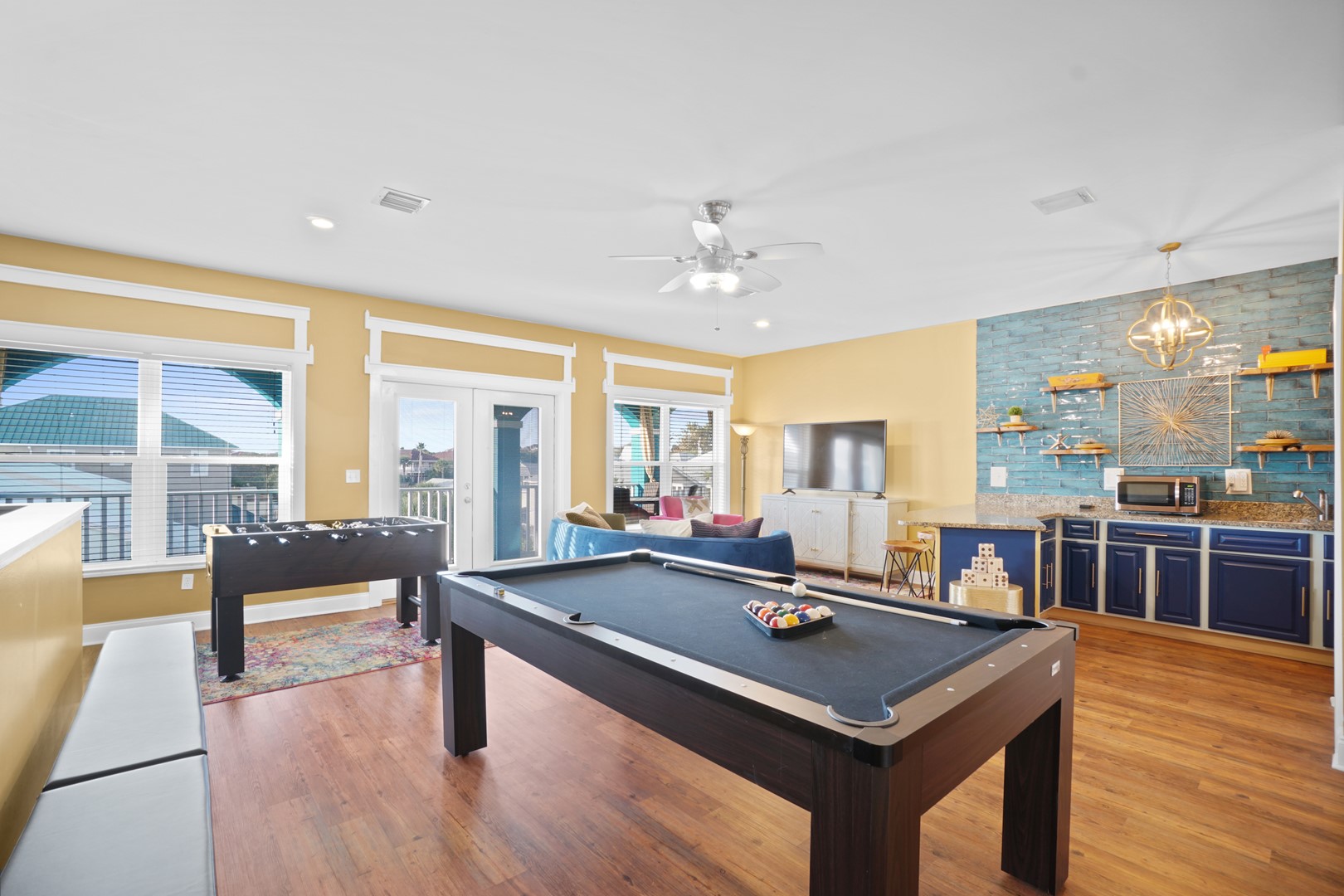 • Third-floor game room with pool table, foosball, wet bar & TV