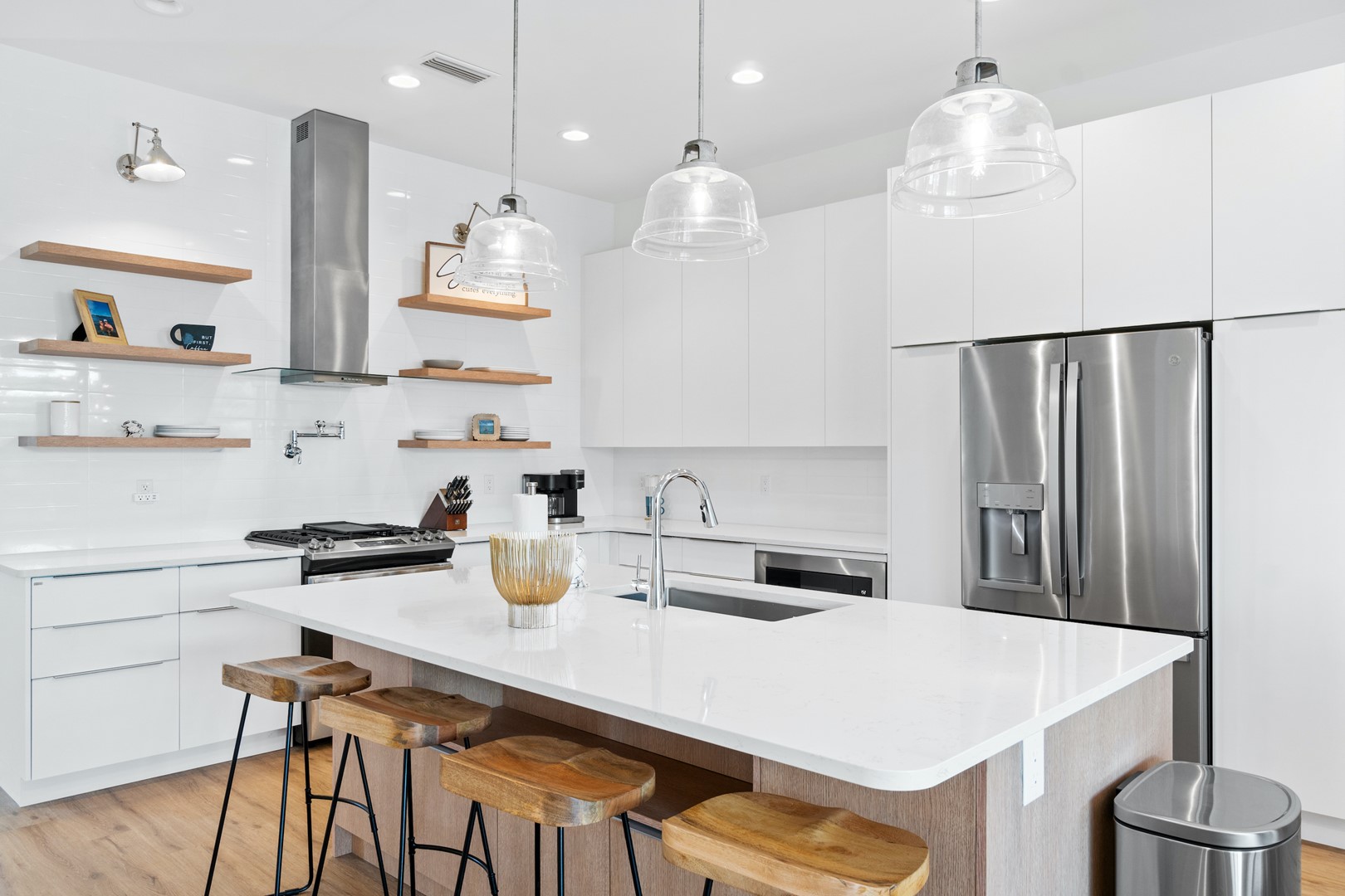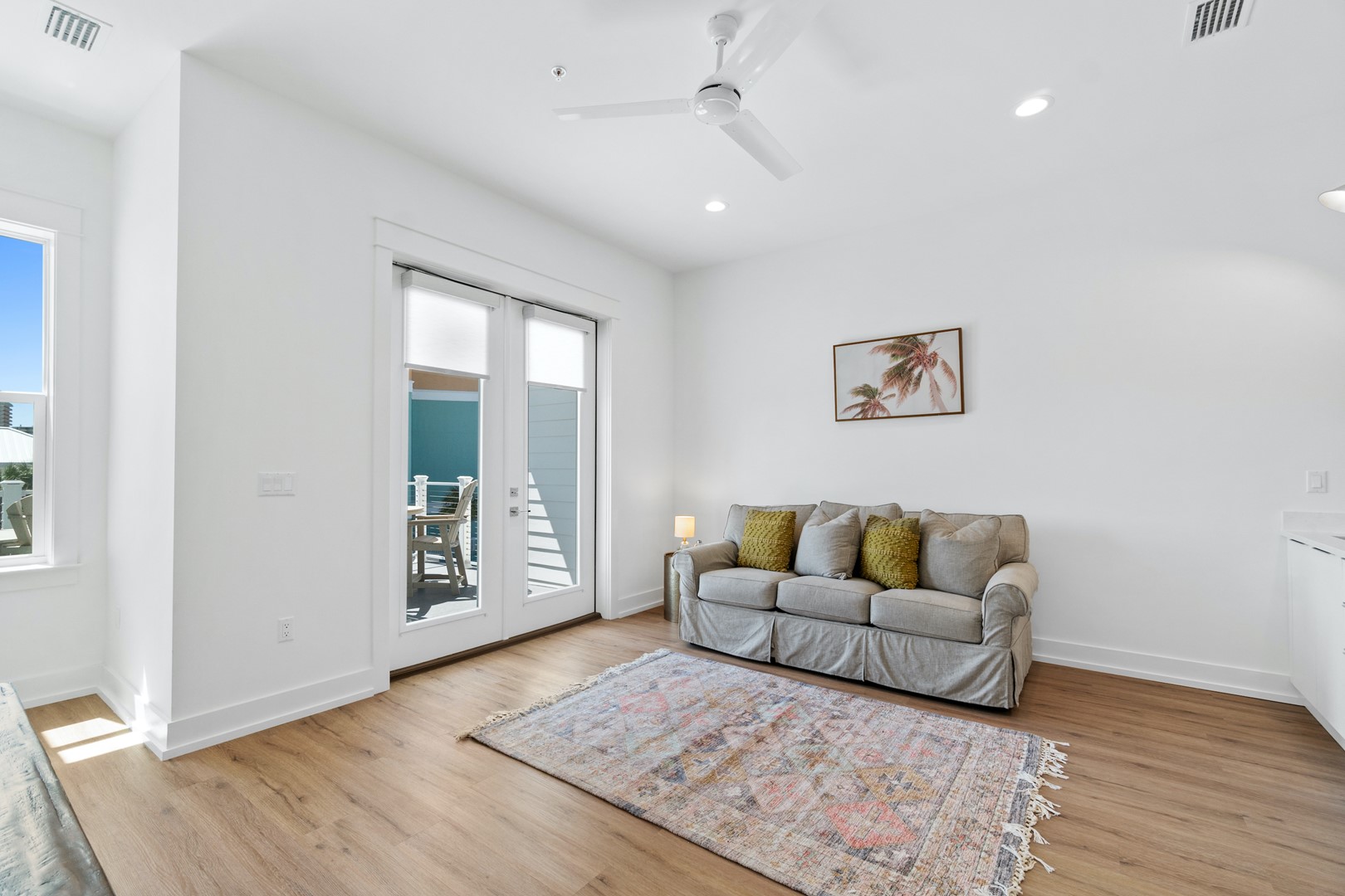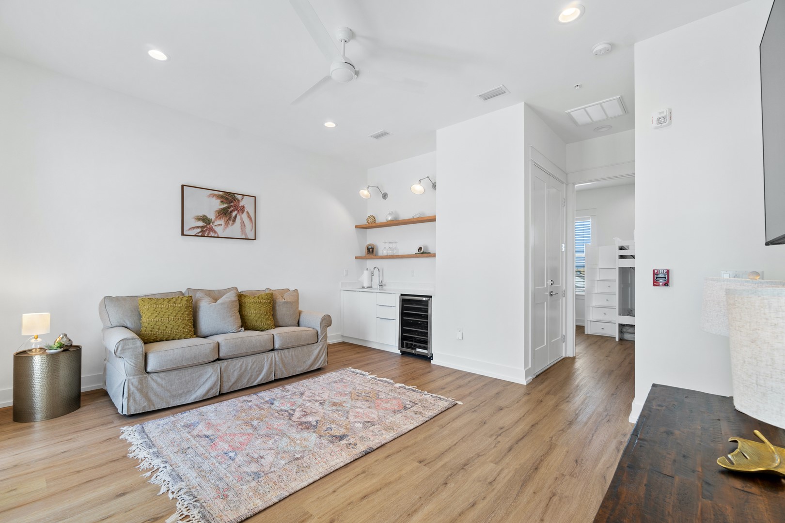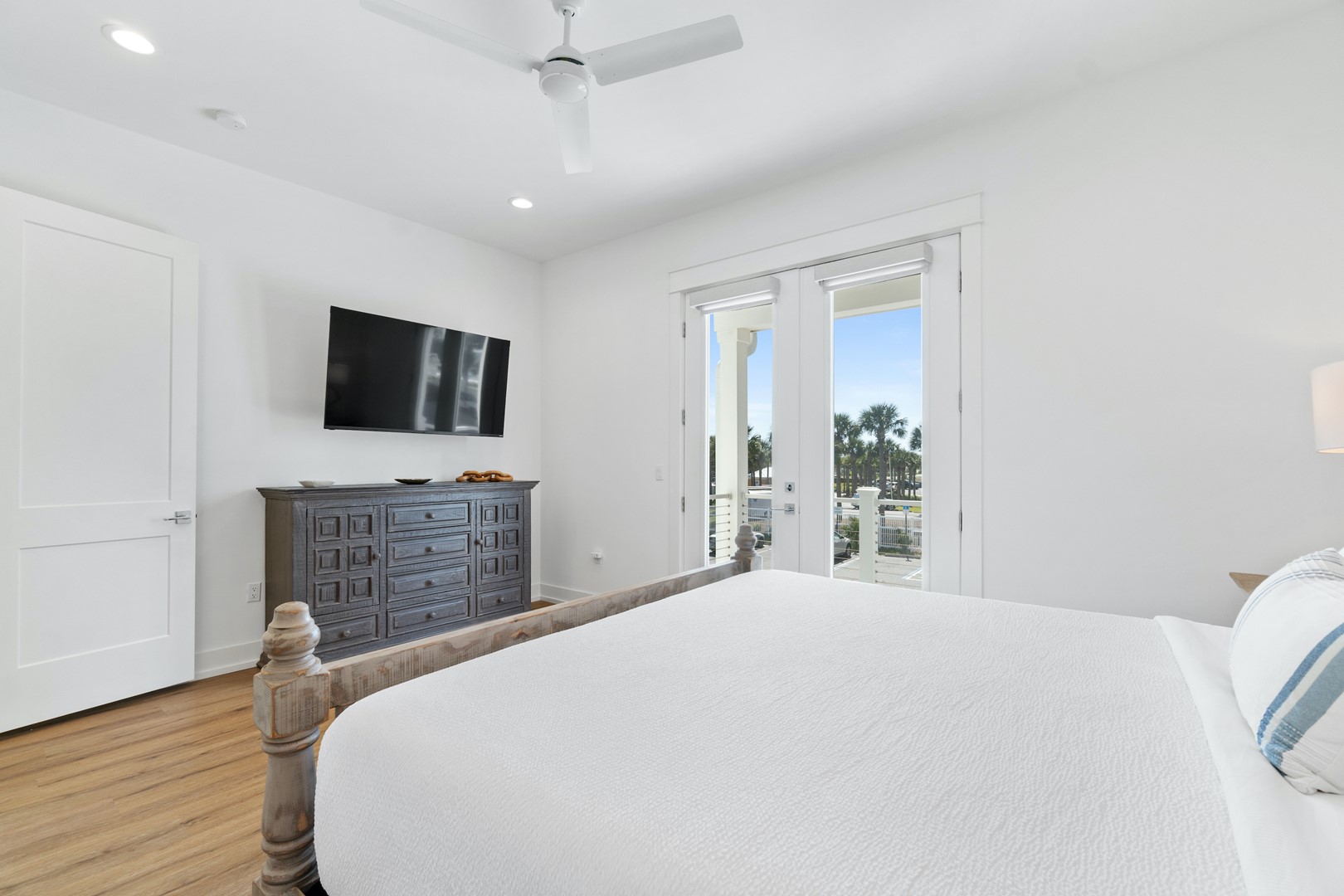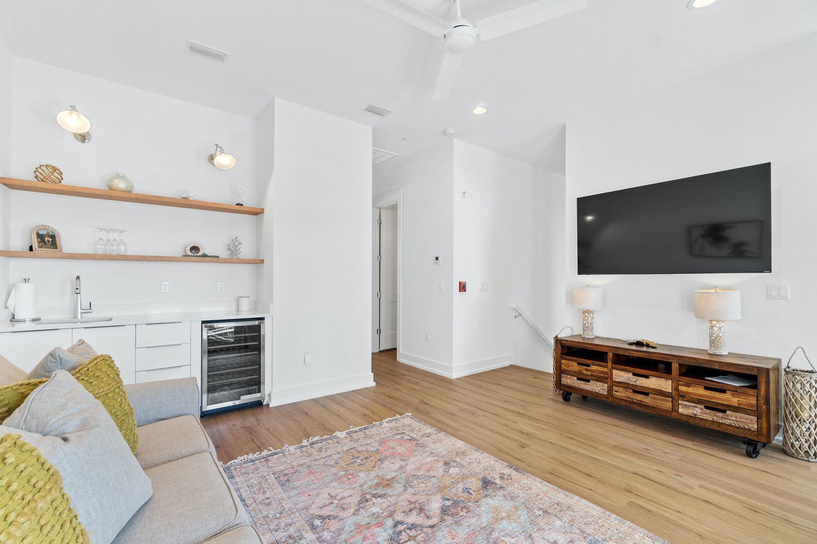 Inside, you’ll find bright, open spaces designed for gathering and unwinding. The main living area features plush seating and a Smart TV, while the fully equipped kitchen includes stainless steel appliances, a breakfast bar, and everything you need to prepare coastal-inspired meals. Dine together indoors or step outside to enjoy dinner poolside.