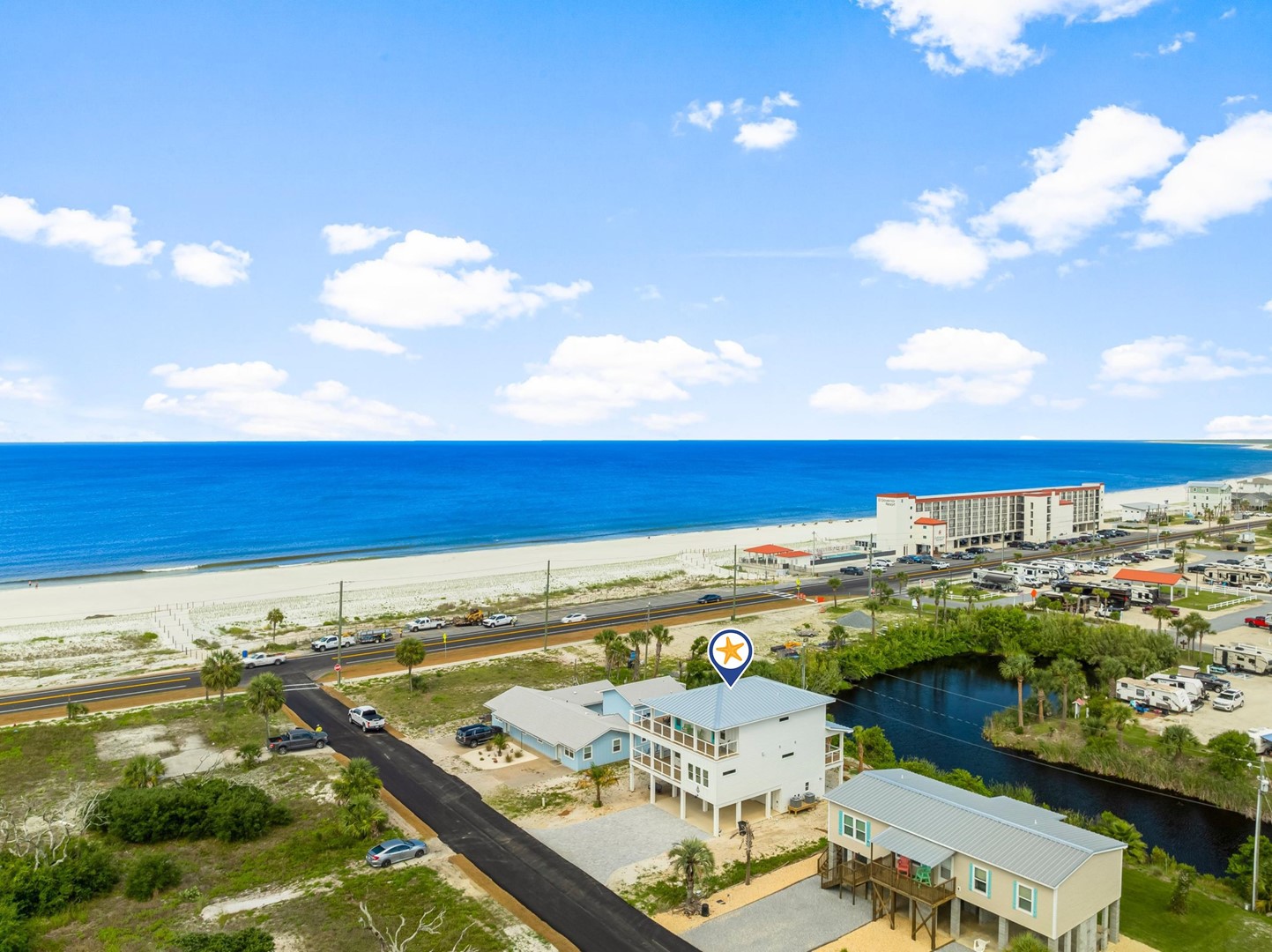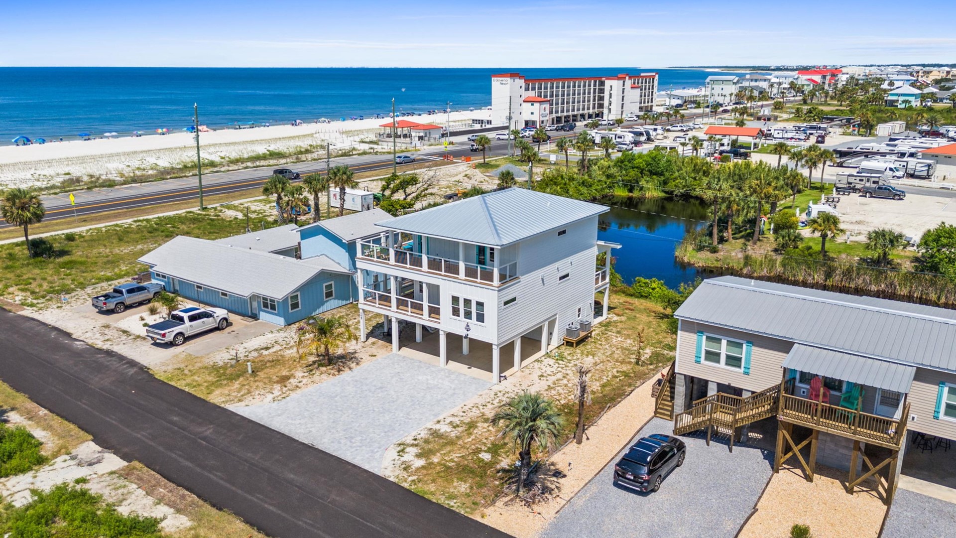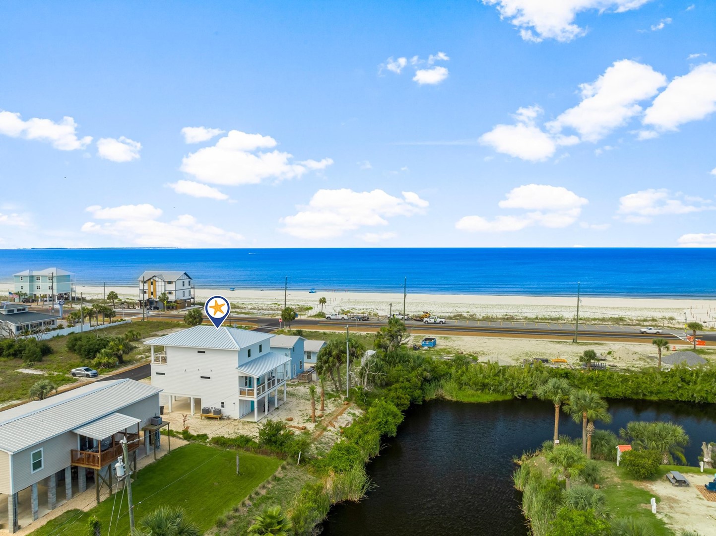 Just steps from the beach and nestled along a peaceful canal, this home offers stunning water views in every direction. Spacious balconies provide the perfect place to relax and take in the scenery, while living rooms on each floor ensure there’s plenty of space for everyone to spread out and unwind. Each bedroom features breathtaking gulf views, and the home is outfitted with luxurious, high-end bathrooms throughout. For the best views, head up to the top-floor sun deck—ideal for sunbathing, stargazing, or keeping an eye on your group enjoying the beach below.
