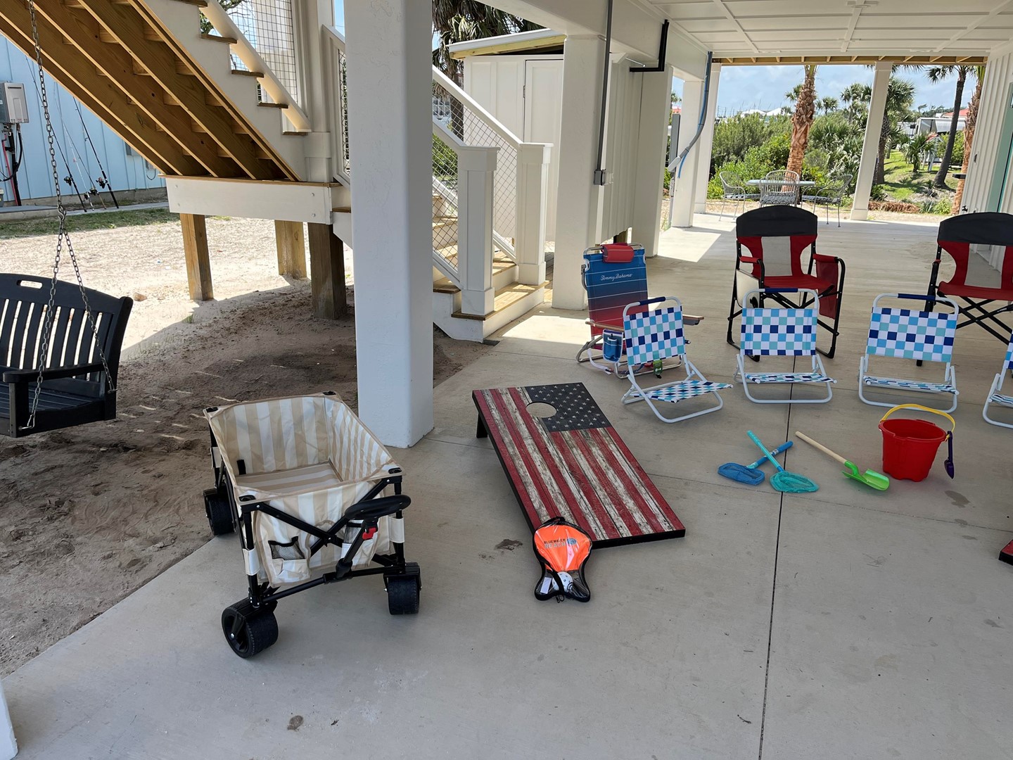 NOTE: The owner's beach gear and cornhole are included but not guaranteed. Should any item become lost or broken making them unavailable to use, there will be no refund as the use provided is at the courtesy of the owner.