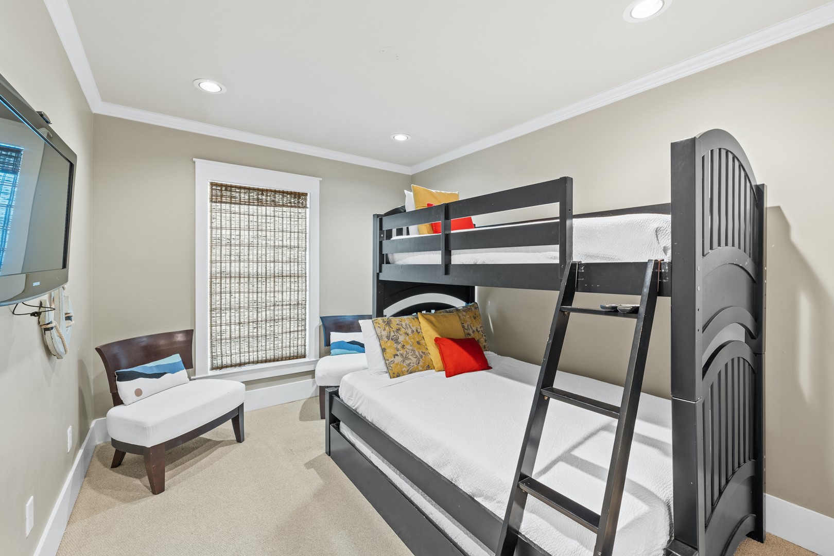 • Bedroom 4: Twin/full bunk + twin trundle, TV