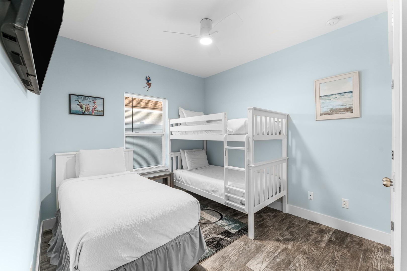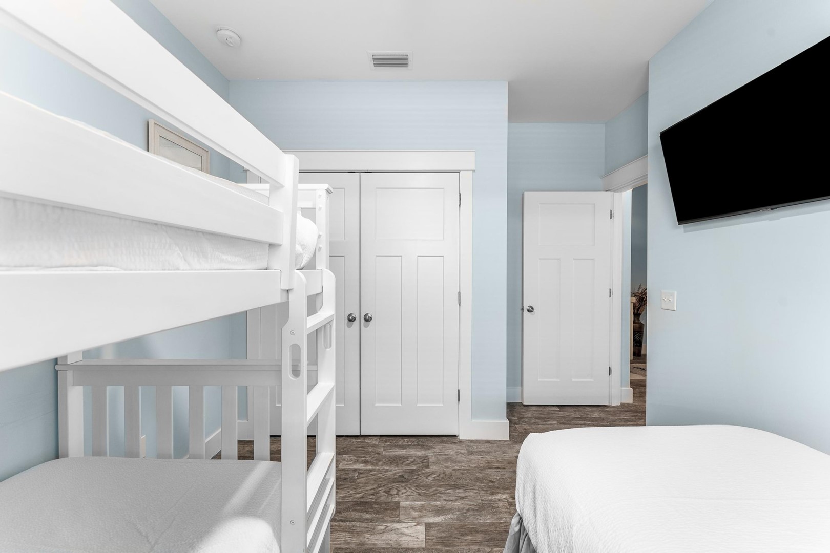 • Bedroom 3: Twin bed and twin-over-twin bunk, 50" TV