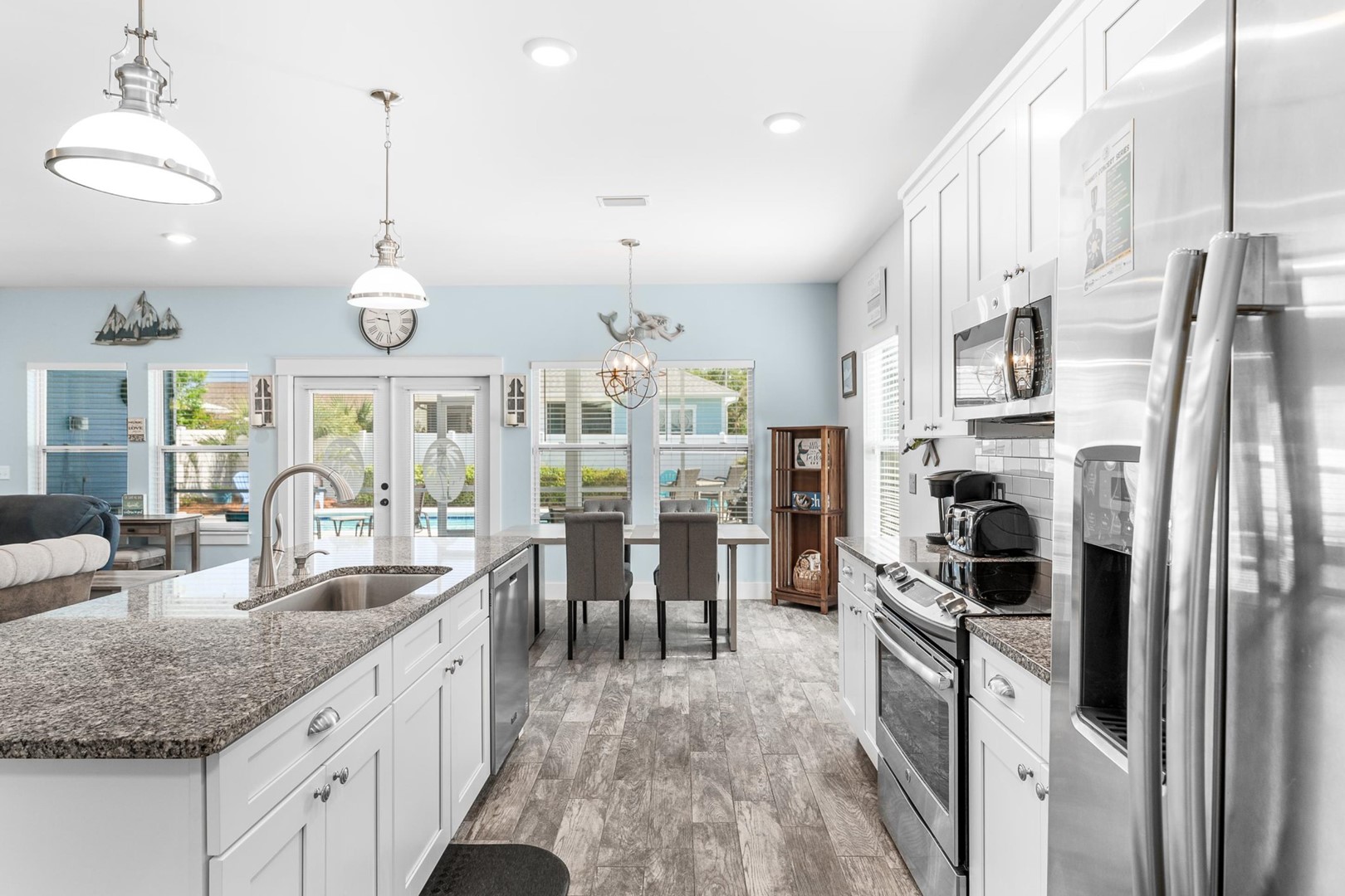 Lazee Daze captures the easygoing spirit of Panama City Beach’s West End. It’s a short, scenic stroll to Beach Access #86, yet tucked away in a peaceful neighborhood with your own private pool and fenced yard. The one-level layout, open design, and cozy spaces make it ideal for families who want comfort, convenience, and pure relaxation.
