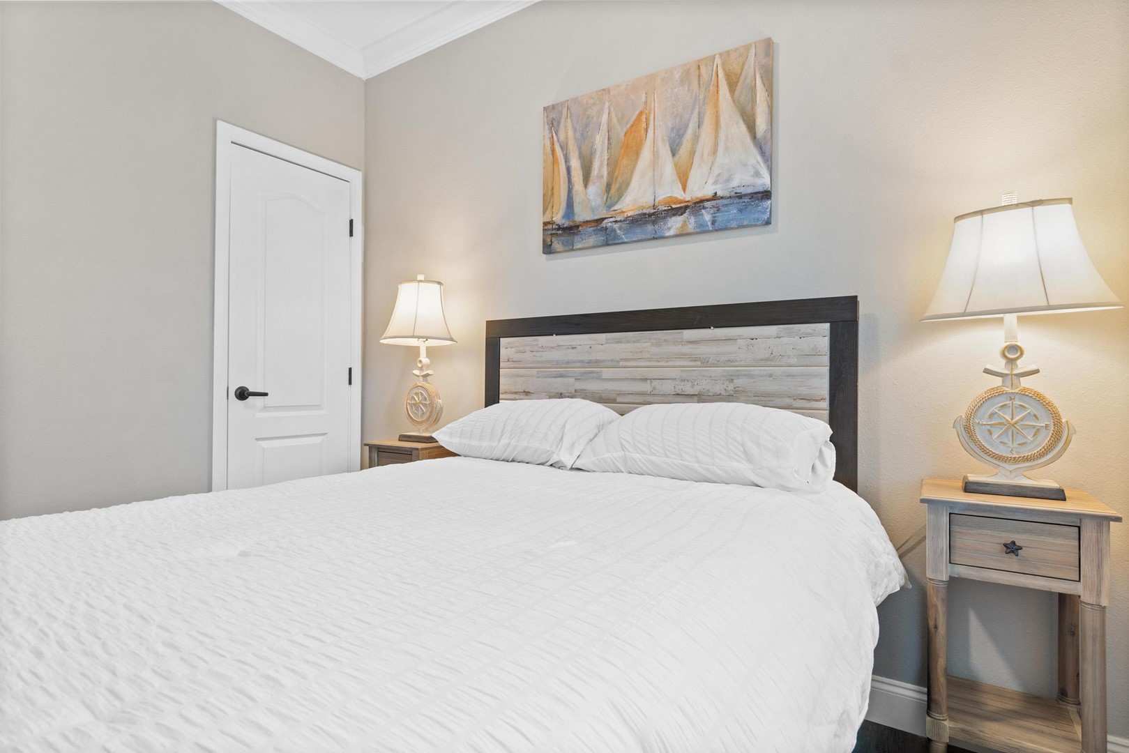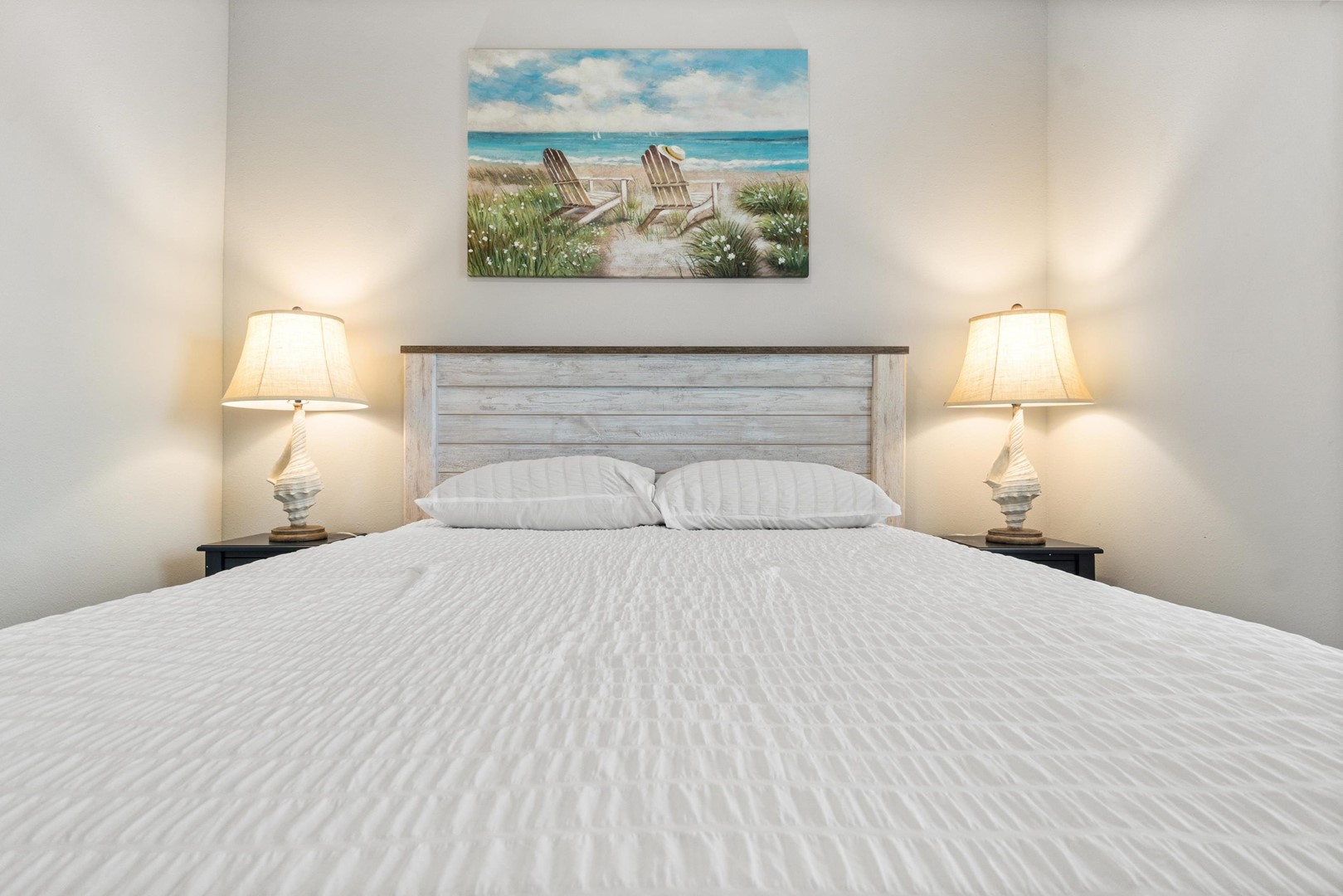 • Bedroom 1: Queen bed, Smart TV, en suite bathroom