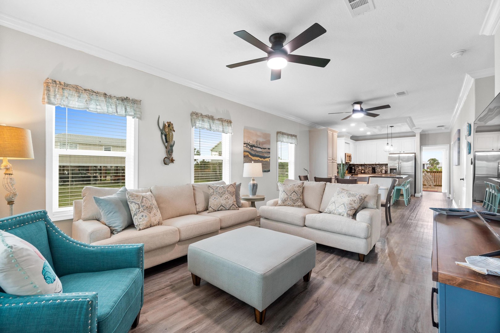 Welcome to Lazy Palms, a 4-bedroom, 2-bathroom vacation home in Mexico Beach, Florida by Panhandle Getaways. Ideal for families, groups, or pet lovers, this inviting beach house features a comfortable living area with Smart TV, a fully equipped kitchen with breakfast bar, and thoughtfully designed sleeping accommodations for up to nine guests. After a day at the beach, unwind indoors or enjoy the peaceful surroundings of this charming coastal retreat.