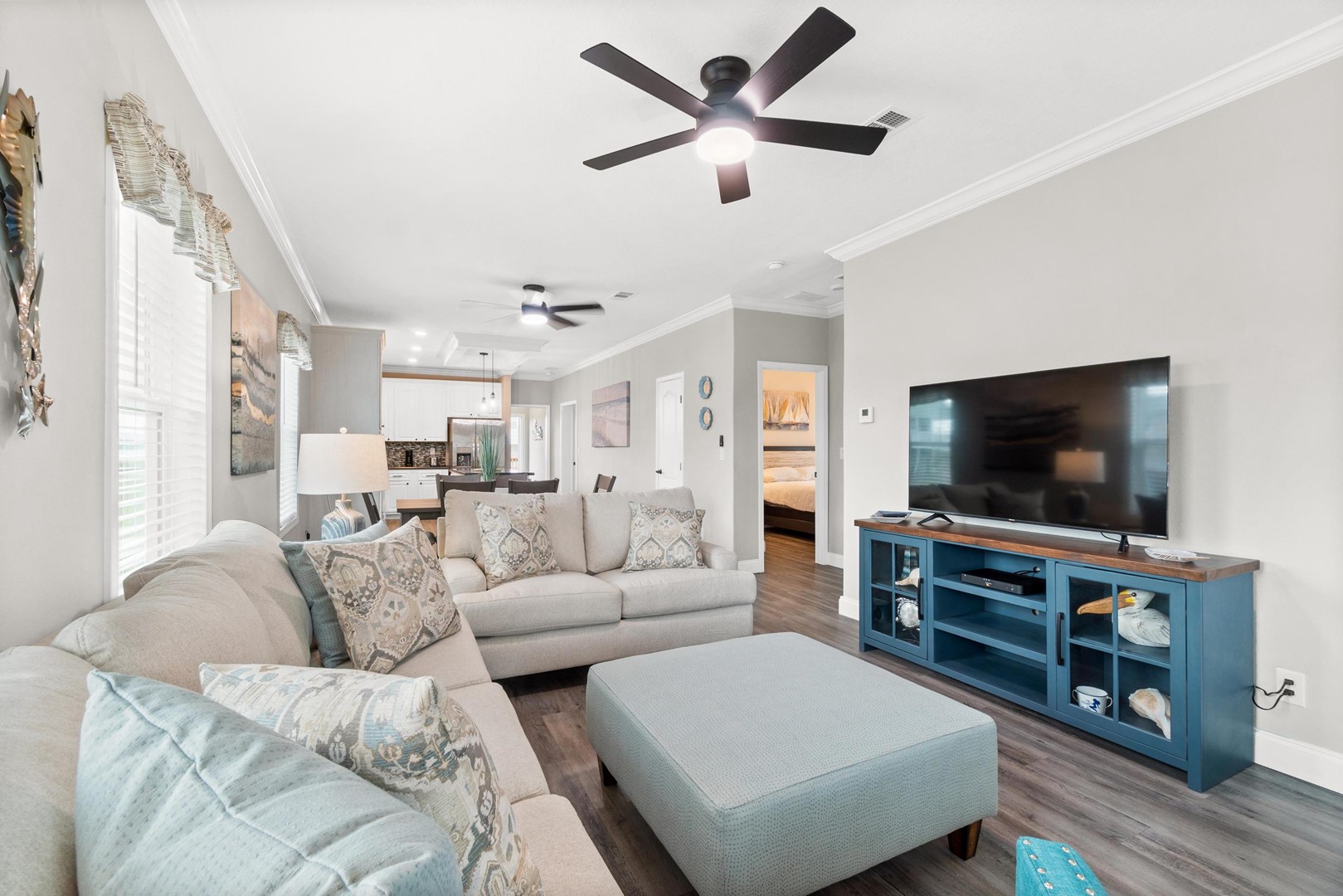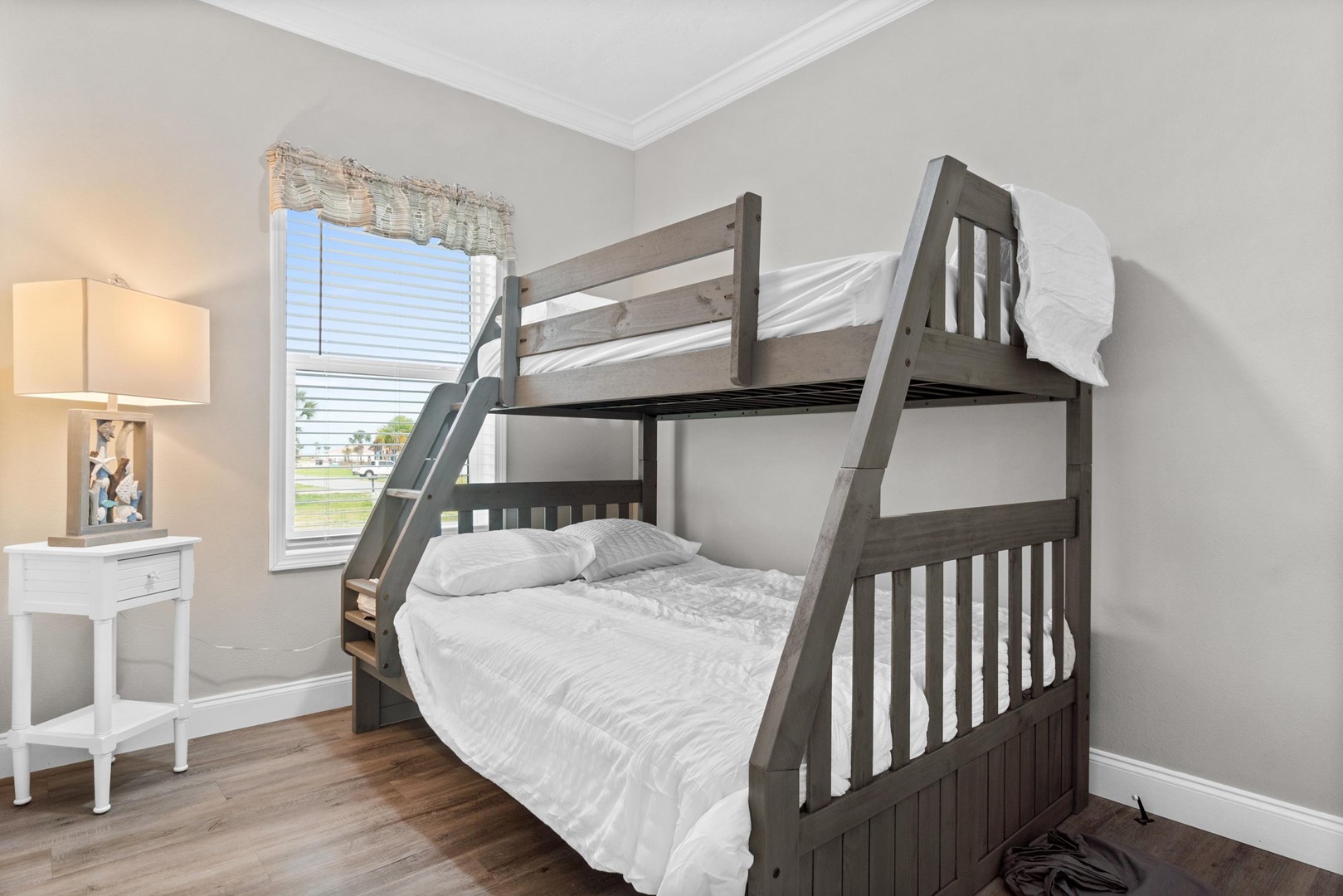 • Bedroom 4: Twin-over-full bunk bed, Smart TV