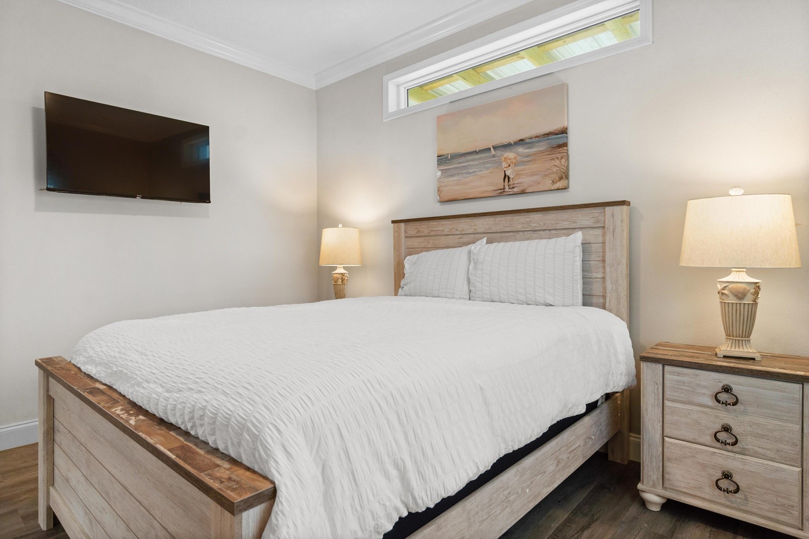 • Bedroom 2: Full bed, Smart TV