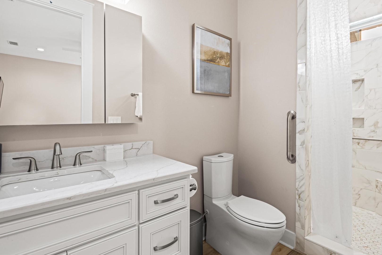• Bathroom 5: Tub/shower combo with support bars