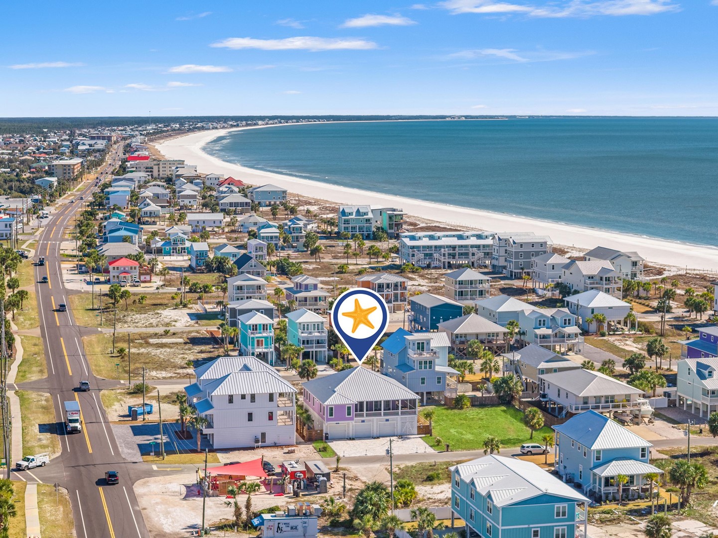 Experience elevated coastal living at Magical Purple Haze Family, a stunning 5-bedroom, 5.5-bath luxury vacation home in Mexico Beach, Florida, presented by Panhandle Getaways. Thoughtfully designed for discerning travelers, this expansive retreat is ideal for upscale family vacations, group escapes, and guests traveling with pets, comfortably accommodating up to 19 guests.