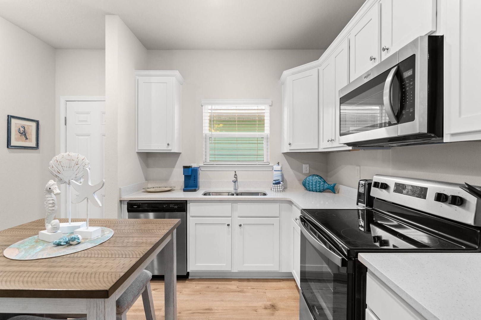 Panhandle Getaways furnishes a few essential items for guests to utilize until they can get to the grocery store. Initial Supplies include: Dishwasher soap, small washing machine powder, each bathroom has amenities (like hotel but NOT restocked) shampoo, conditioner, soap bar. One roll of toilet paper in each bathroom and one paper towel roll in the kitchen. All bed linens and towels are provided. We encourage guests to bring beach towels for use at the pool and beach.