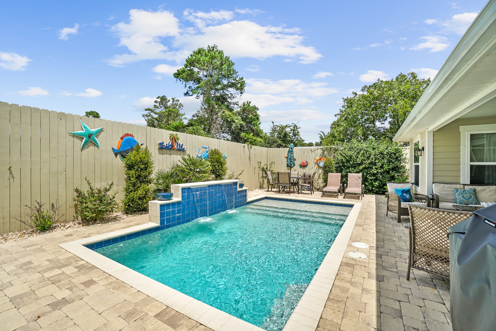 Spend your mornings lounging by the pool, afternoons strolling the beach, and evenings grilling under the stars in your private backyard. Inside, enjoy a spacious living area, fully equipped kitchen, and cozy bedrooms designed for relaxation after a day of coastal fun.