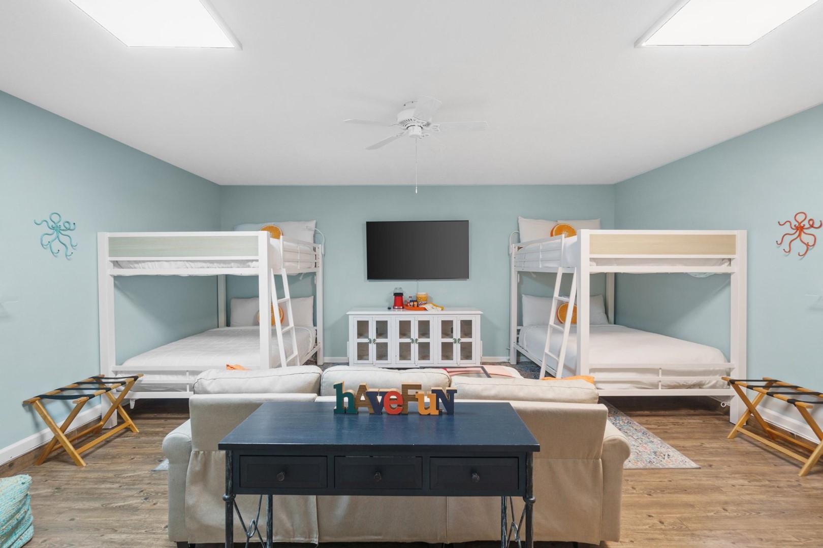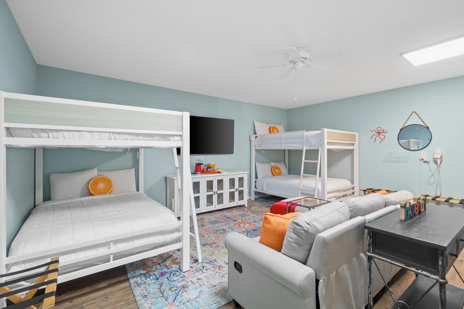 • Bedroom 4: Two Full-over-Full bunk beds, TV, sitting area (main floor)