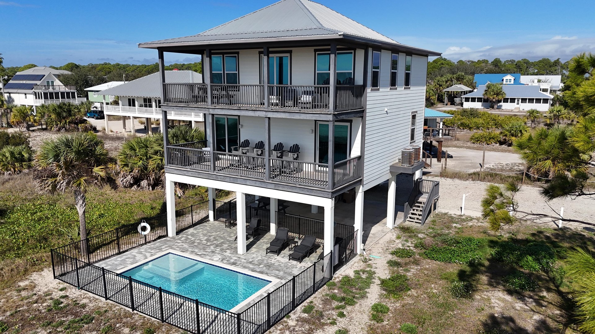 Pet friendly beach house rental, Seminole Wind, located in Indian Pass, FL by Panhandle Getaways is a direct beachfront 4 bedroom, 3 bathroom vacation home with private pool and complete with all of the conveniences of home.