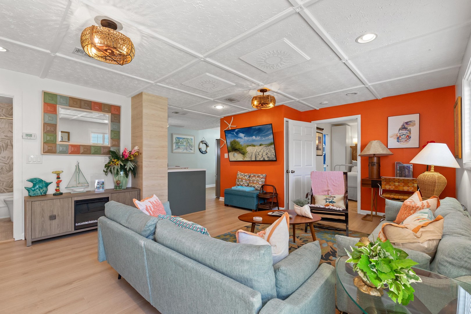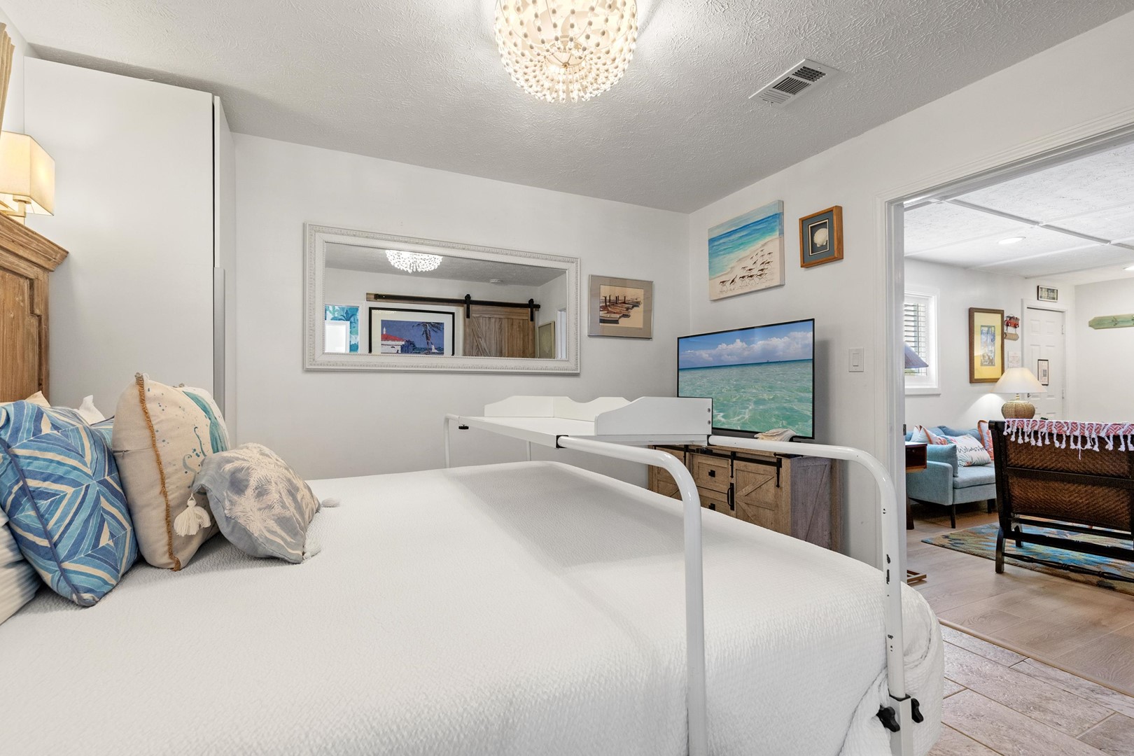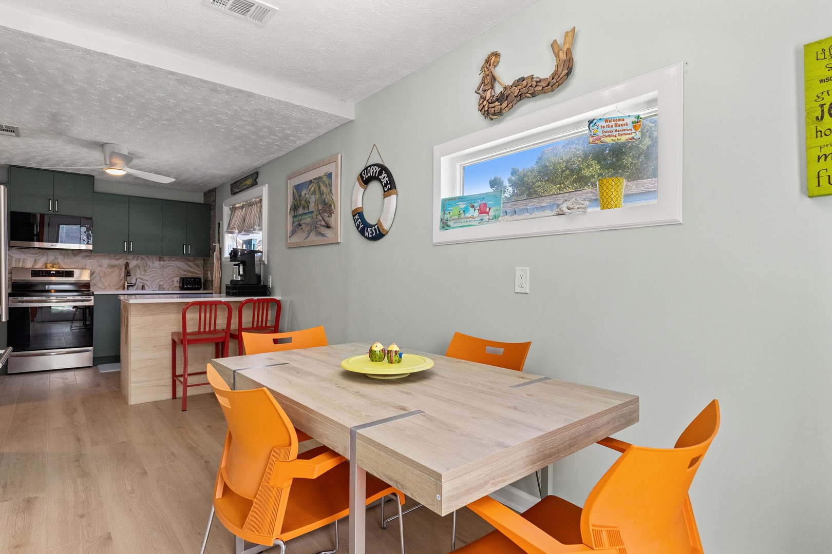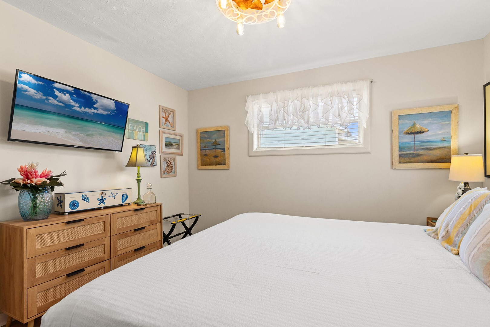 Inside, you’ll find bright, open spaces designed for gathering and unwinding. The fully equipped kitchen makes meal prep simple, and the spacious living area is perfect for streaming your favorite shows after a day on the Gulf.