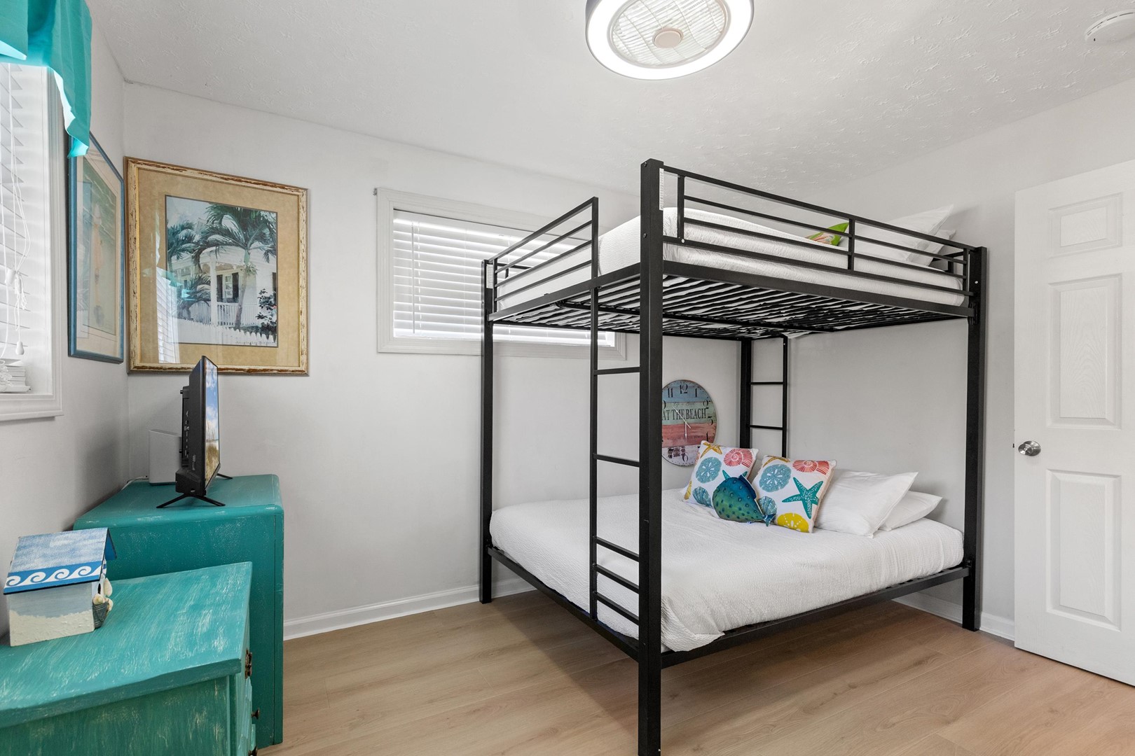 • Bedroom 3 – Full-over-full bunk bed, TV