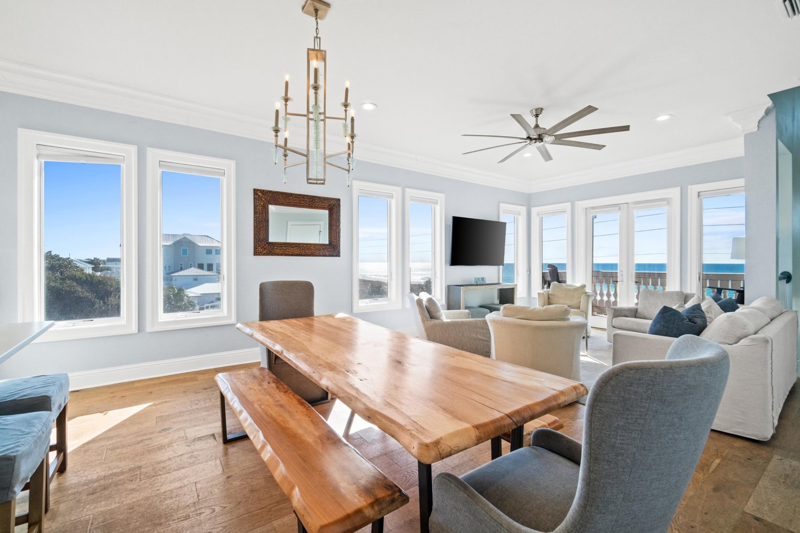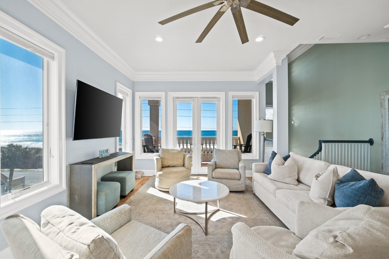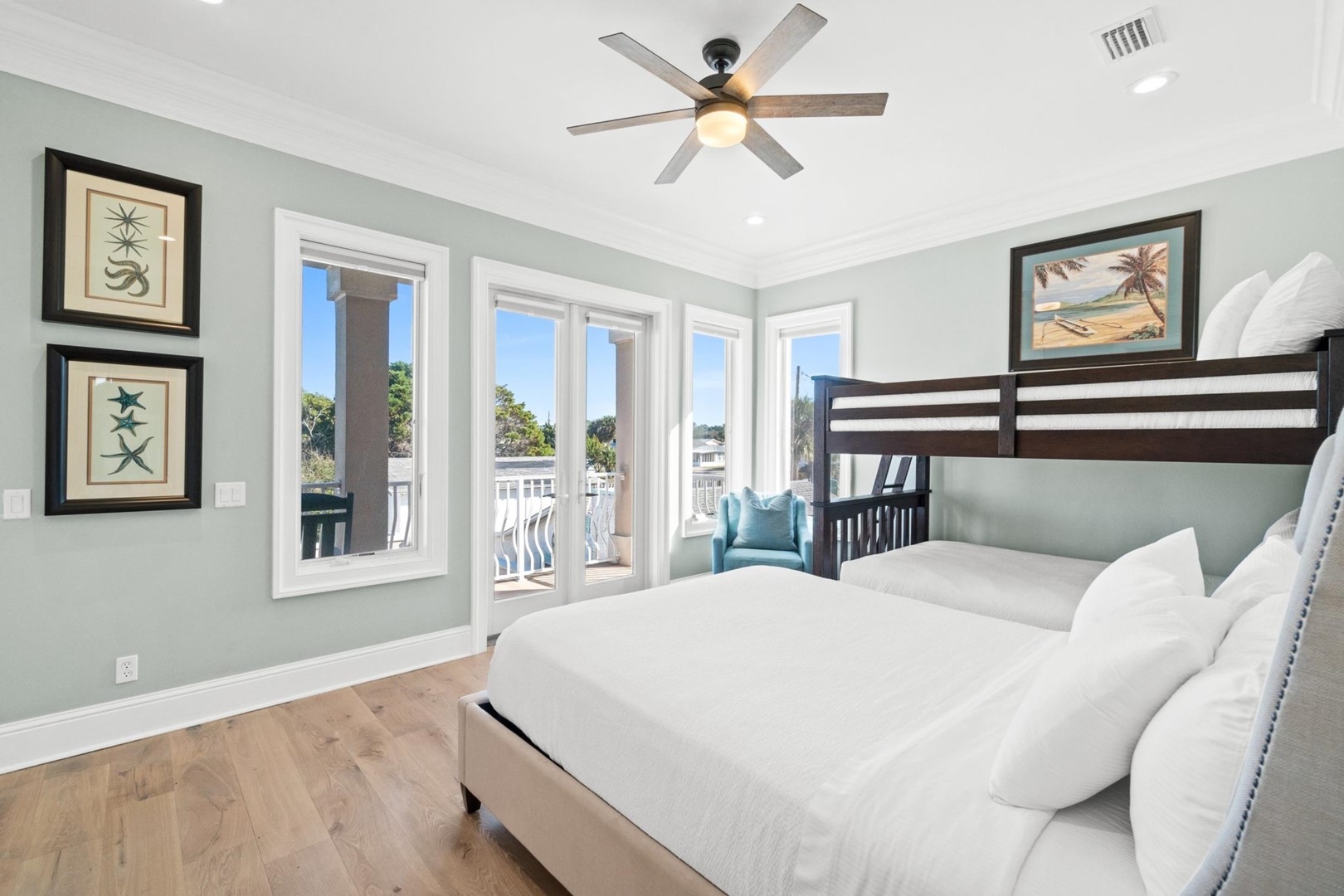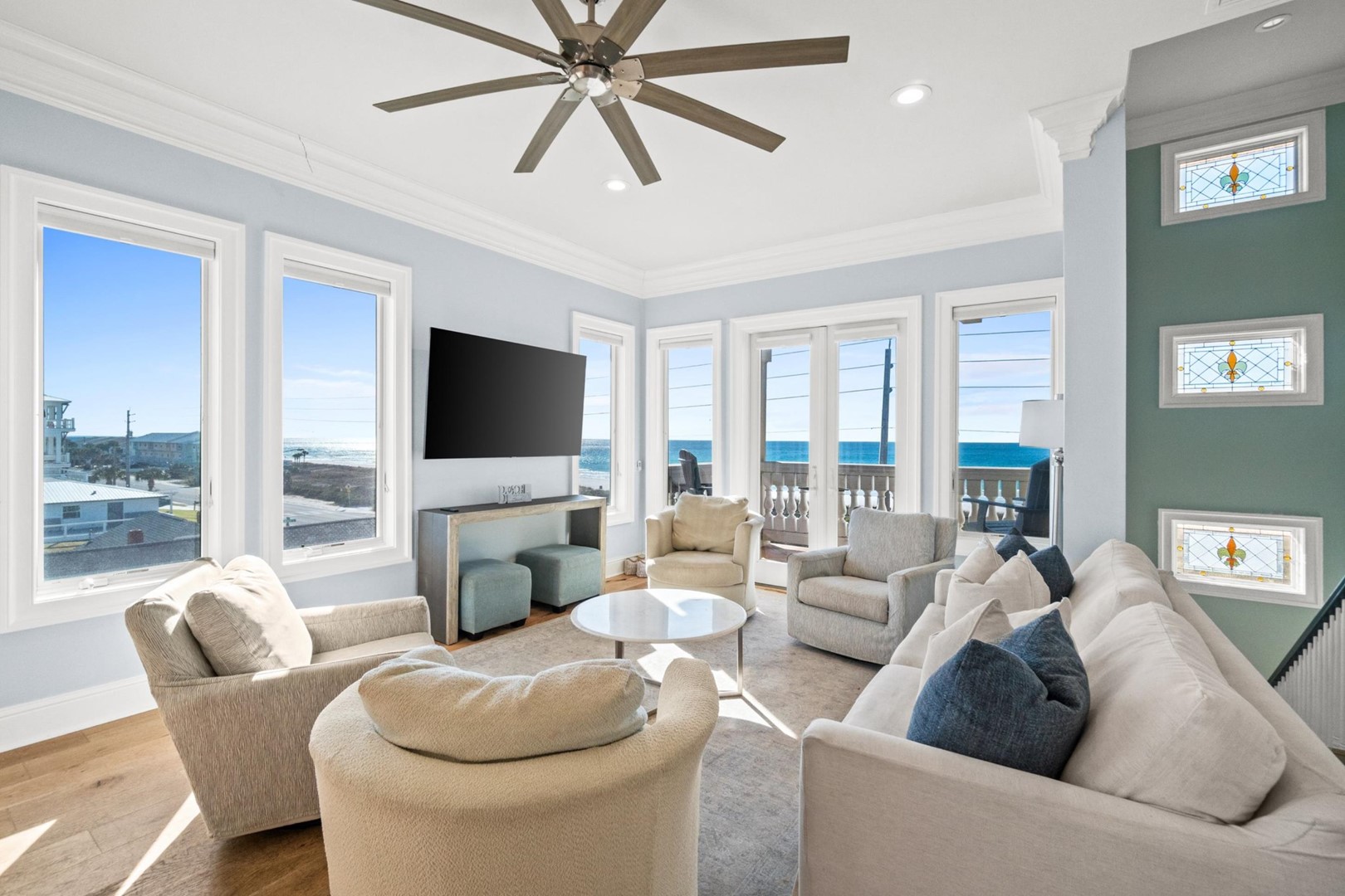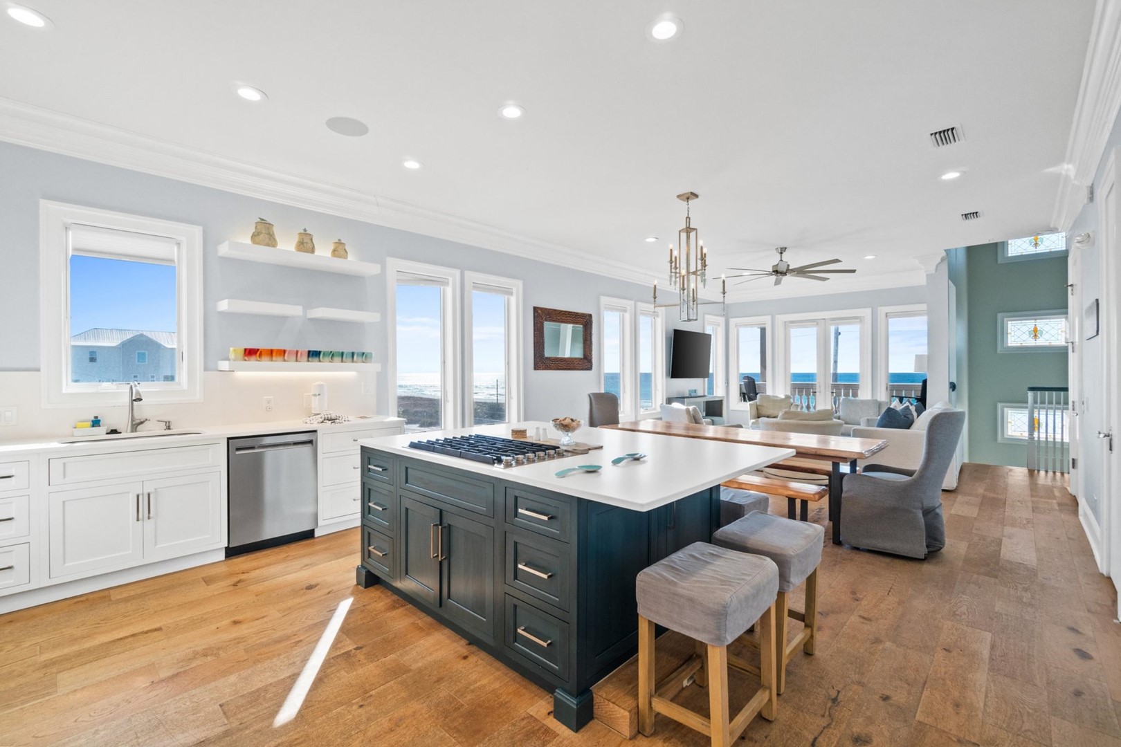 Located just steps from the beach, this three-story home is designed for large families, reunions, or multi-family vacations. Inside, you’ll find two fully equipped kitchens, complete with a waffle maker and griddle, multiple living areas, and a ping pong table for family fun. Step out onto any of the four balconies to enjoy your morning coffee with a Gulf breeze or watch the sunset after a day in the sand.