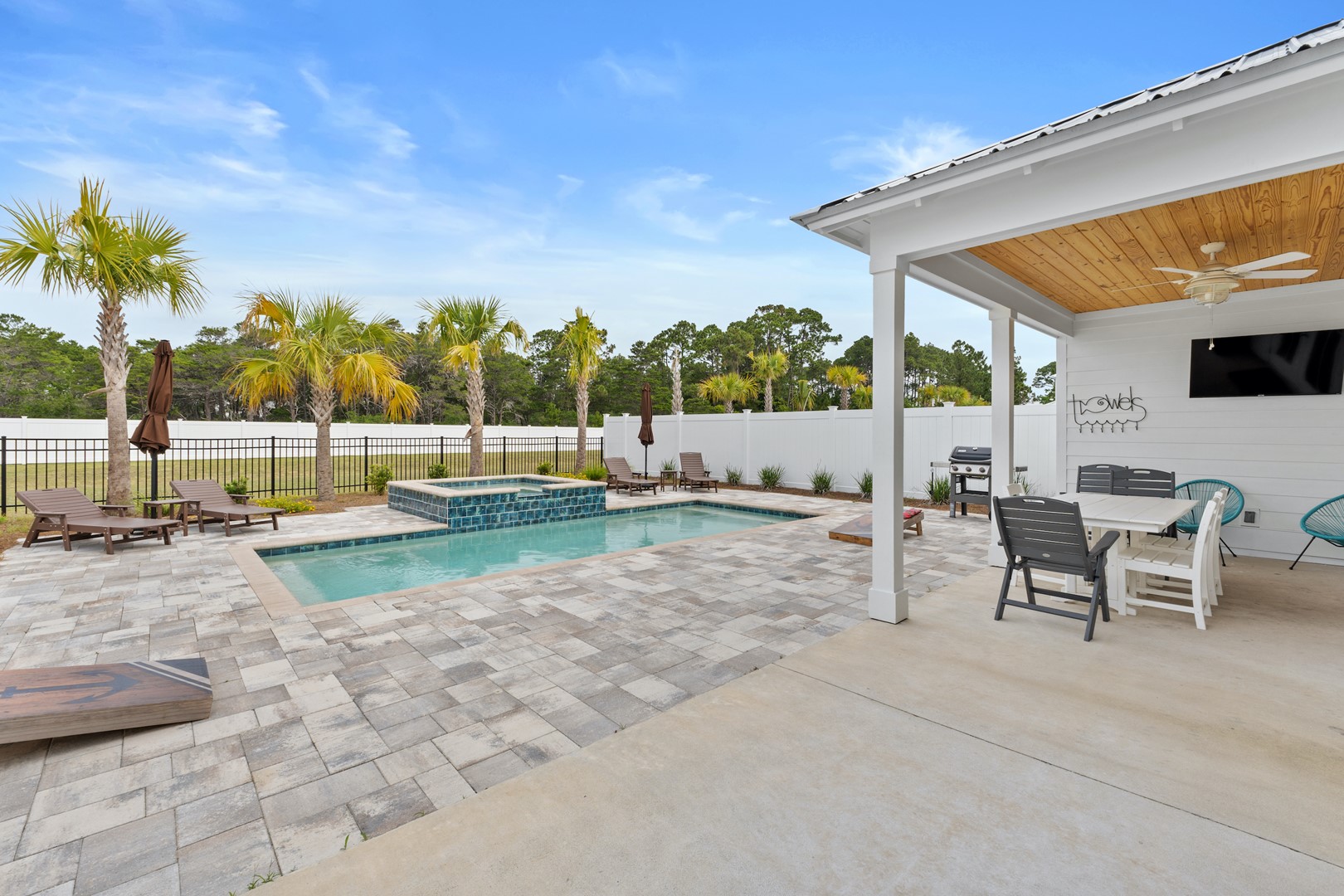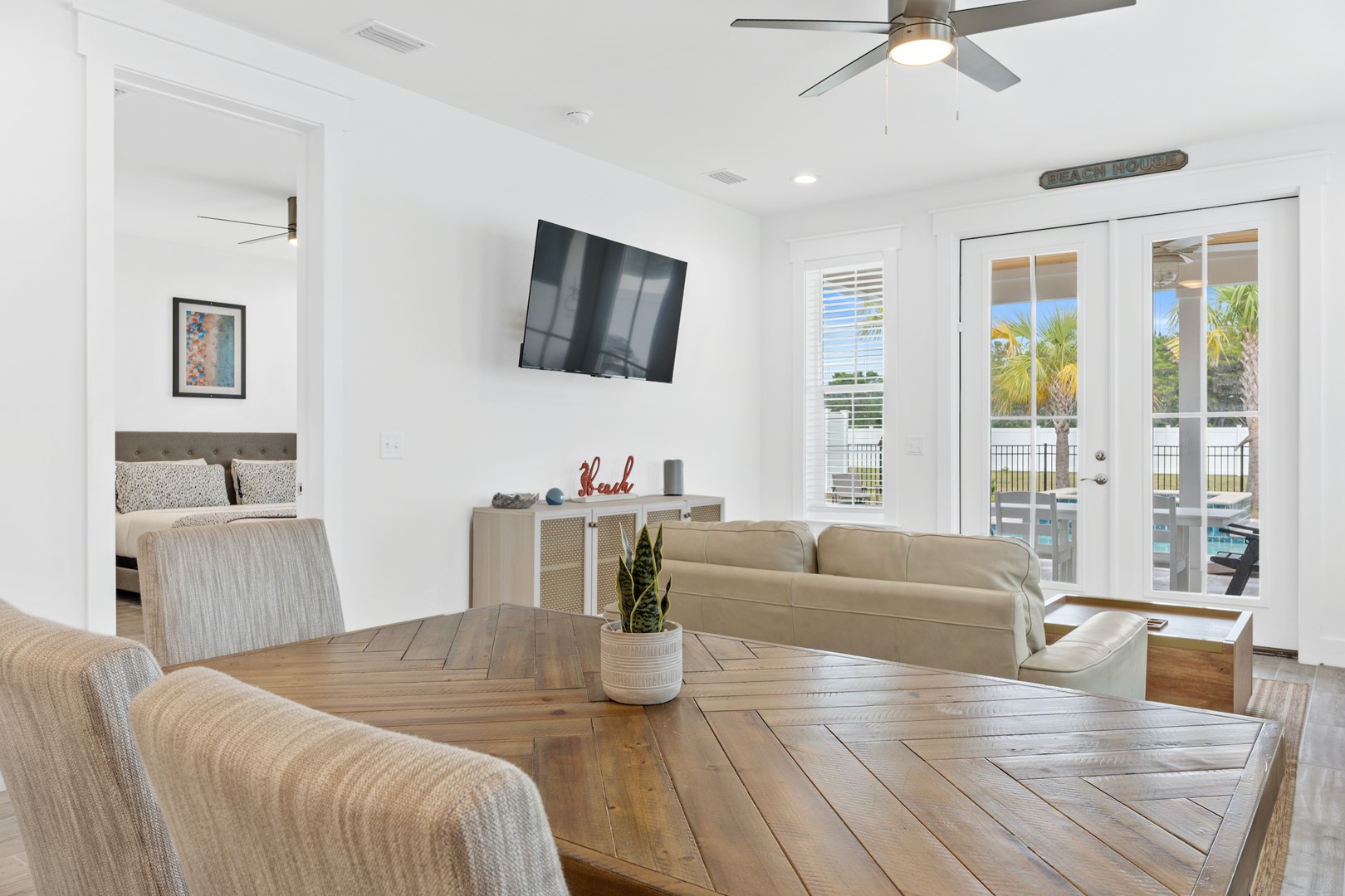 Enjoy mornings by the pool or stroll to nearby beach access for a day by the Gulf. Inside, the open floor plan offers a bright and inviting space with modern furnishings, Smart TVs in every room, and an elevator for convenience. The fully equipped kitchen makes cooking easy, while the large living and dining areas provide plenty of room to gather after a day in the sun.