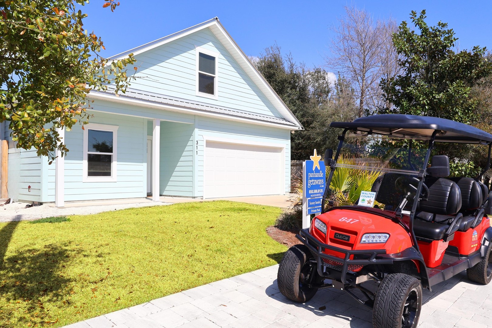 Designed for comfort and convenience, Sunny Sands features a spacious open living area, a fully equipped kitchen, and a private backyard oasis complete with a pool and gazebo. Whether you're spending the day at the beach, cruising the neighborhood by golf cart, or relaxing poolside, this Panama City Beach beach house delivers the ultimate coastal escape.