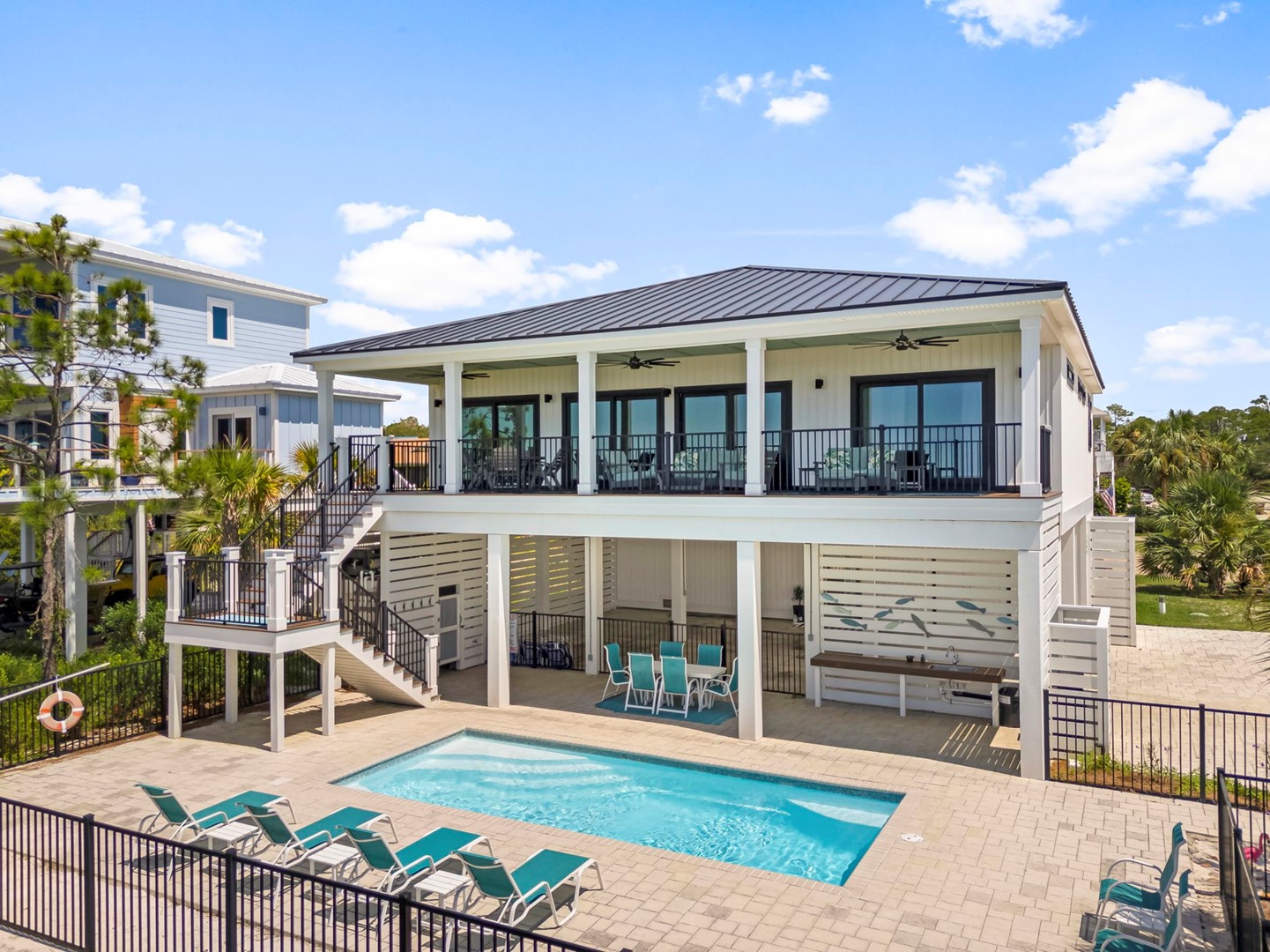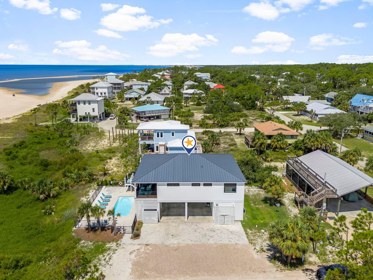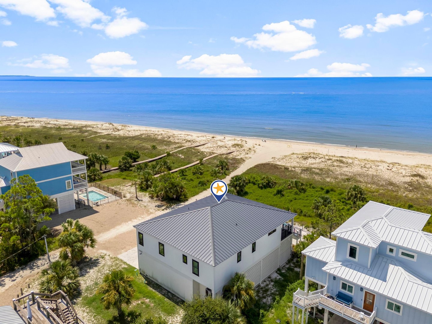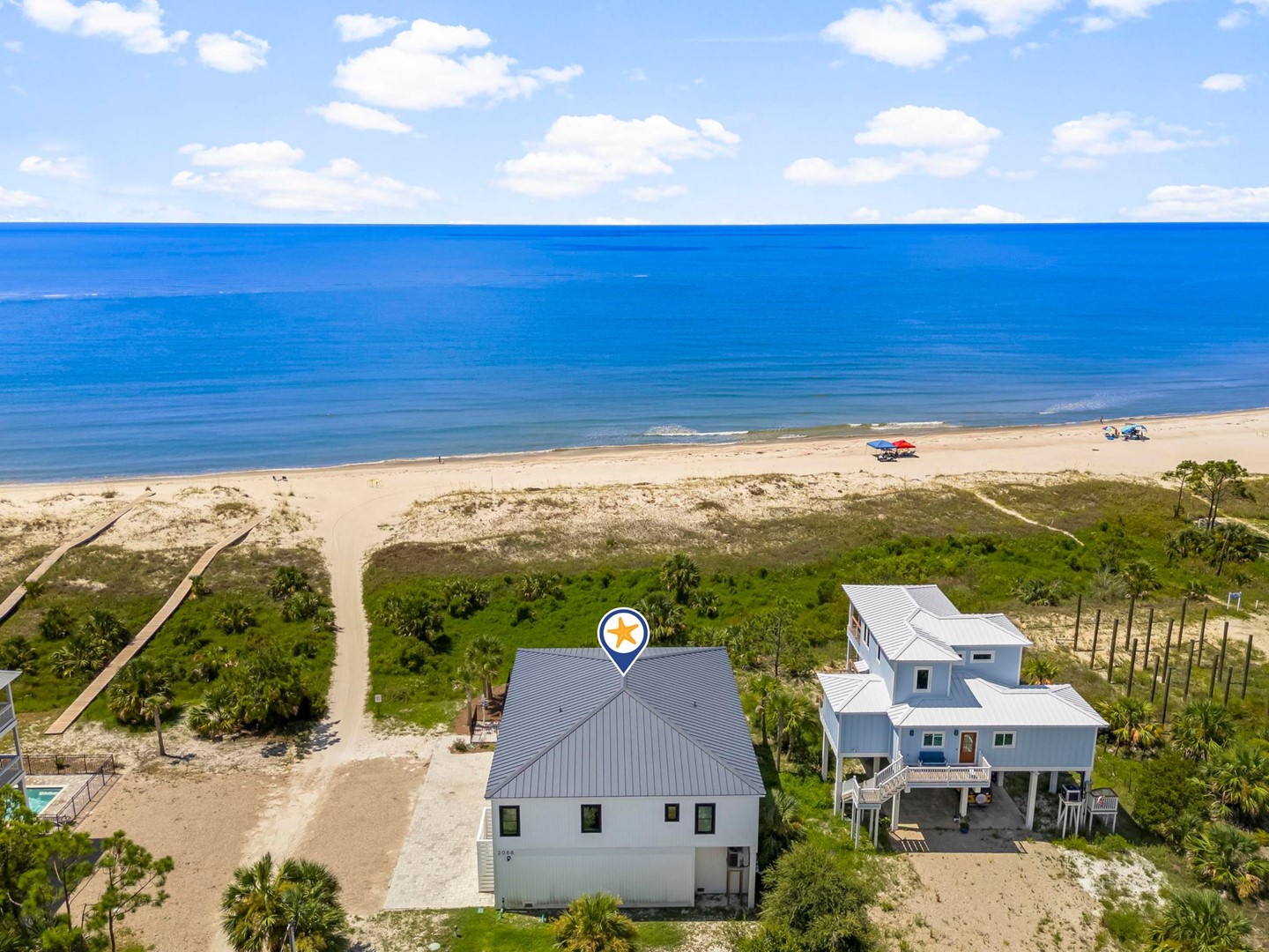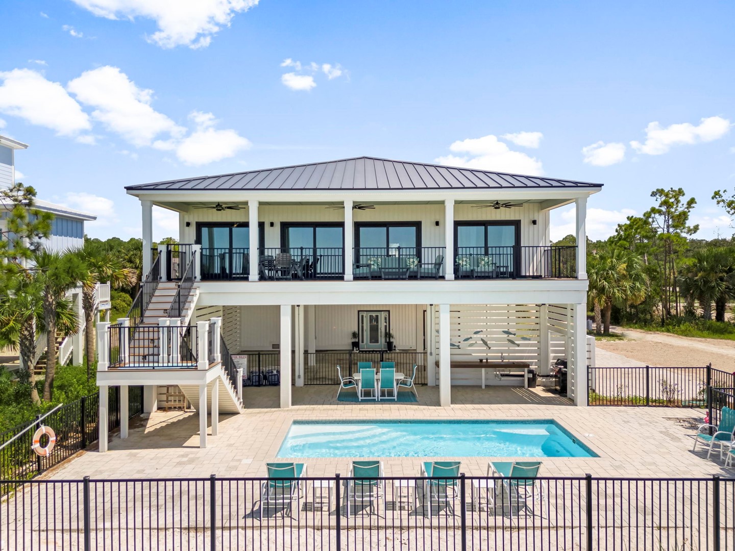 Pet friendly beach house rental, The Great White Florida House, located in Indian Pass, FL by Panhandle Getaways is a direct beachfront 4 bedroom, 4 bathroom vacation home with private pool and complete with all of the conveniences of home.