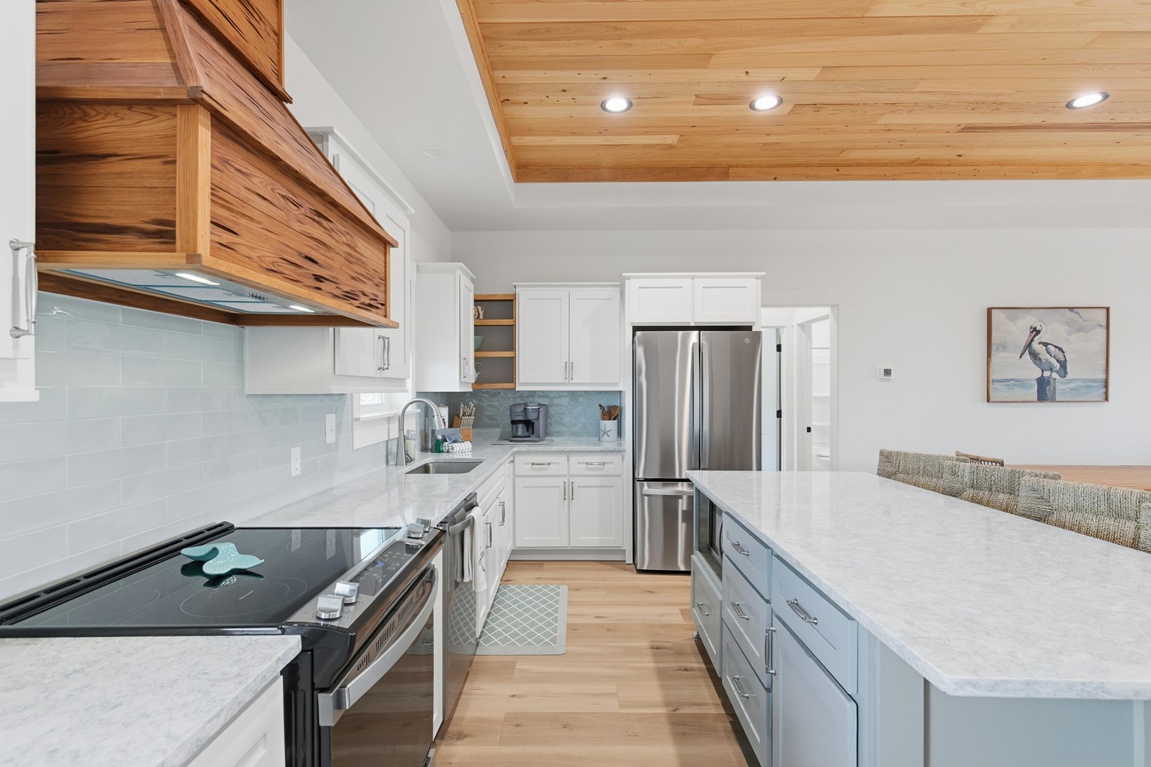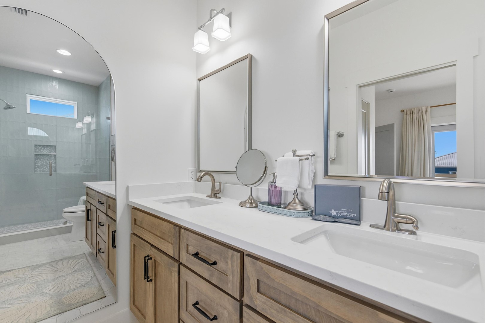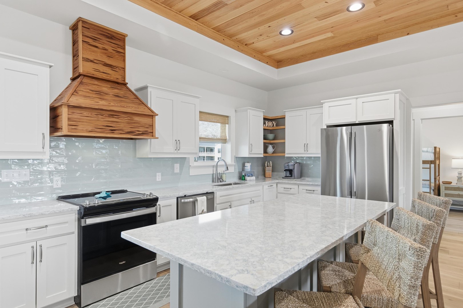 Welcome to Walking on Water, a 4-bedroom, 4-bathroom beach house in St. George Island, Florida by Panhandle Getaways. Perfect for families or groups, this beautifully designed coastal retreat features an open living area with a 70" Smart TV, a fully equipped kitchen with breakfast bar, and a spacious deck overlooking your private saltwater pool. Just steps from the beach, this home combines the best of island living with comfort, style, and relaxation.