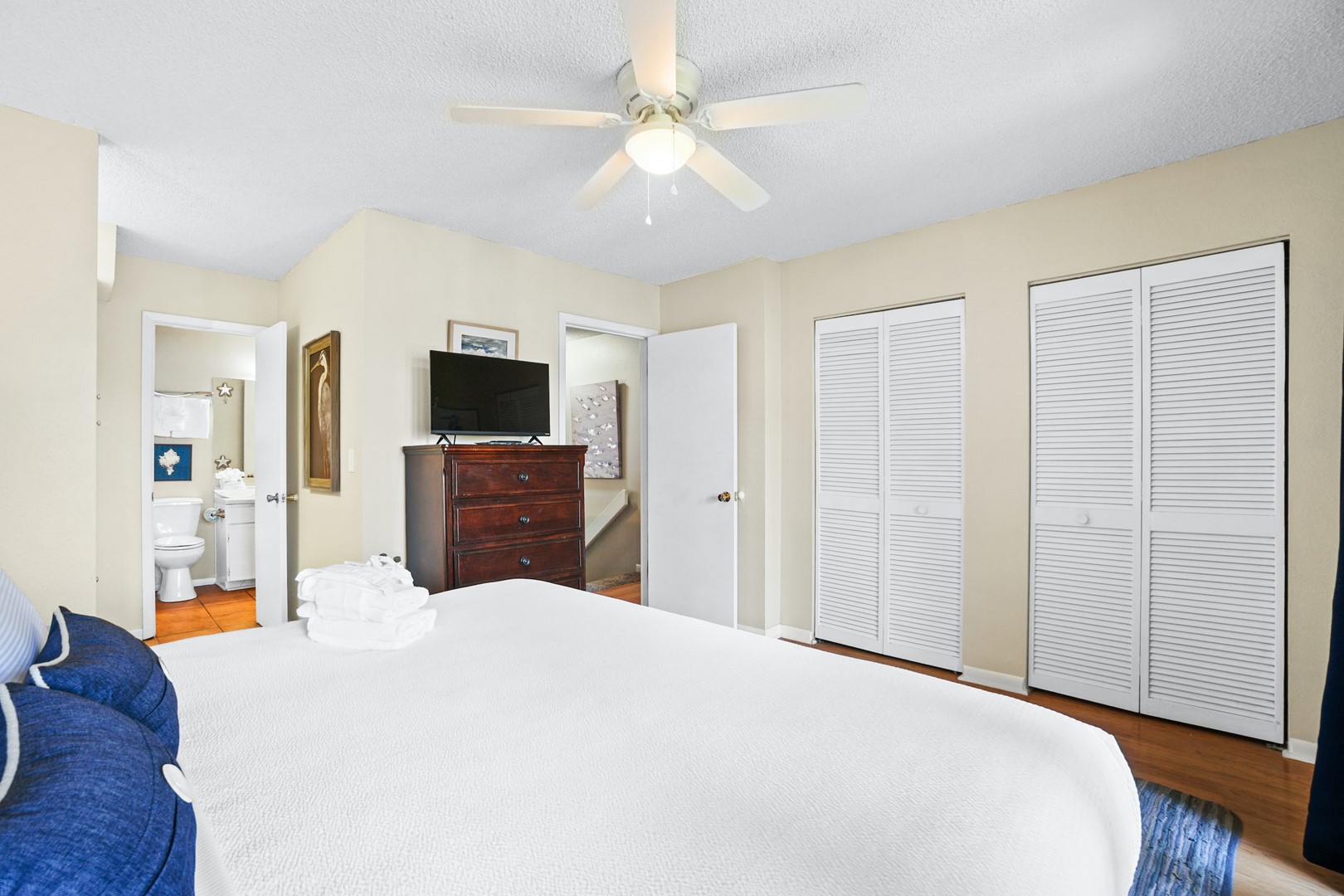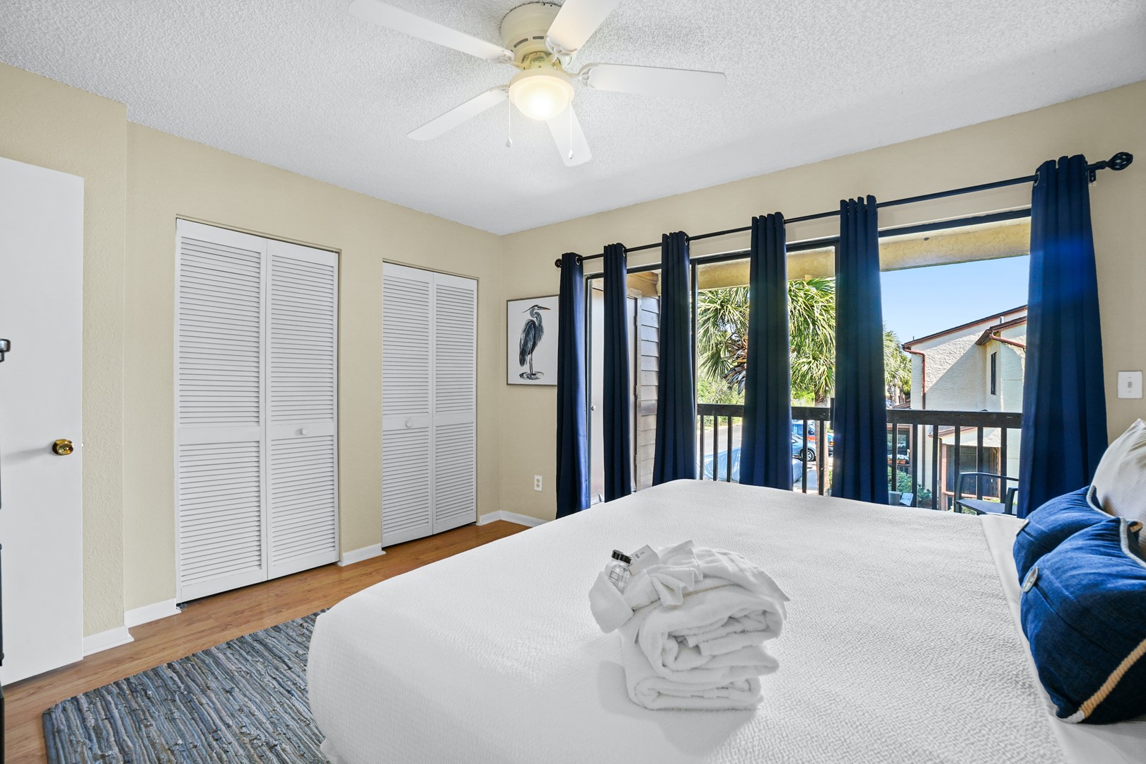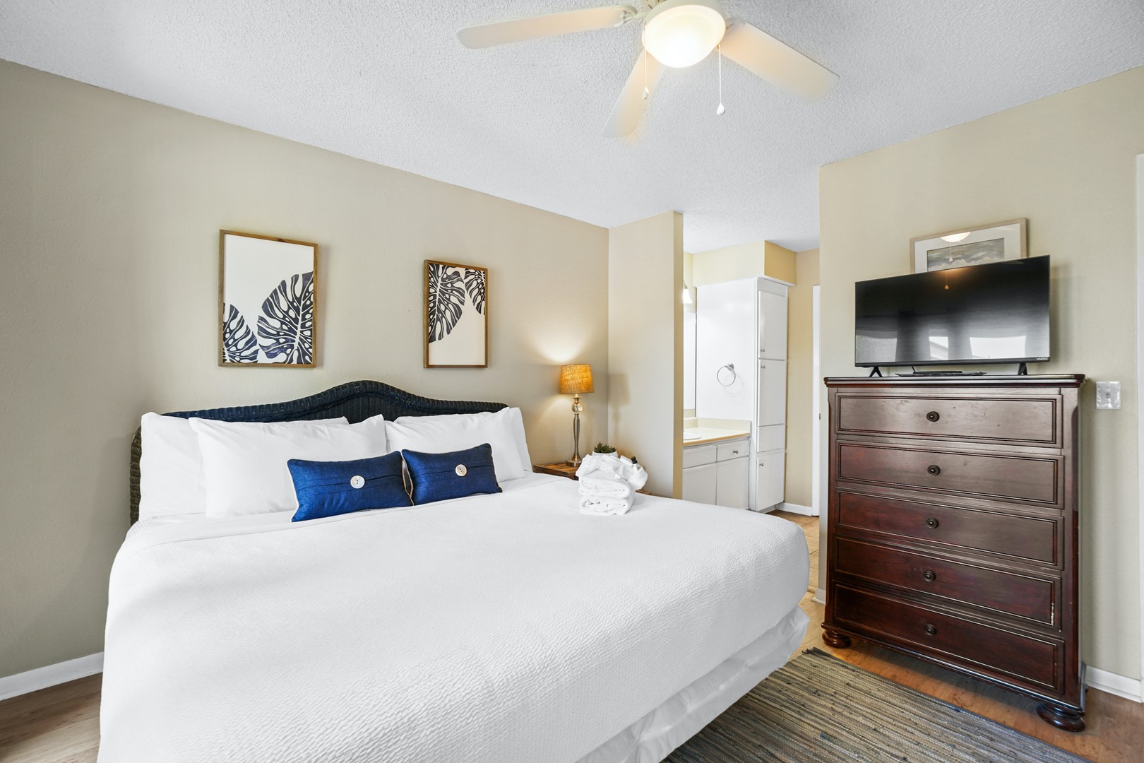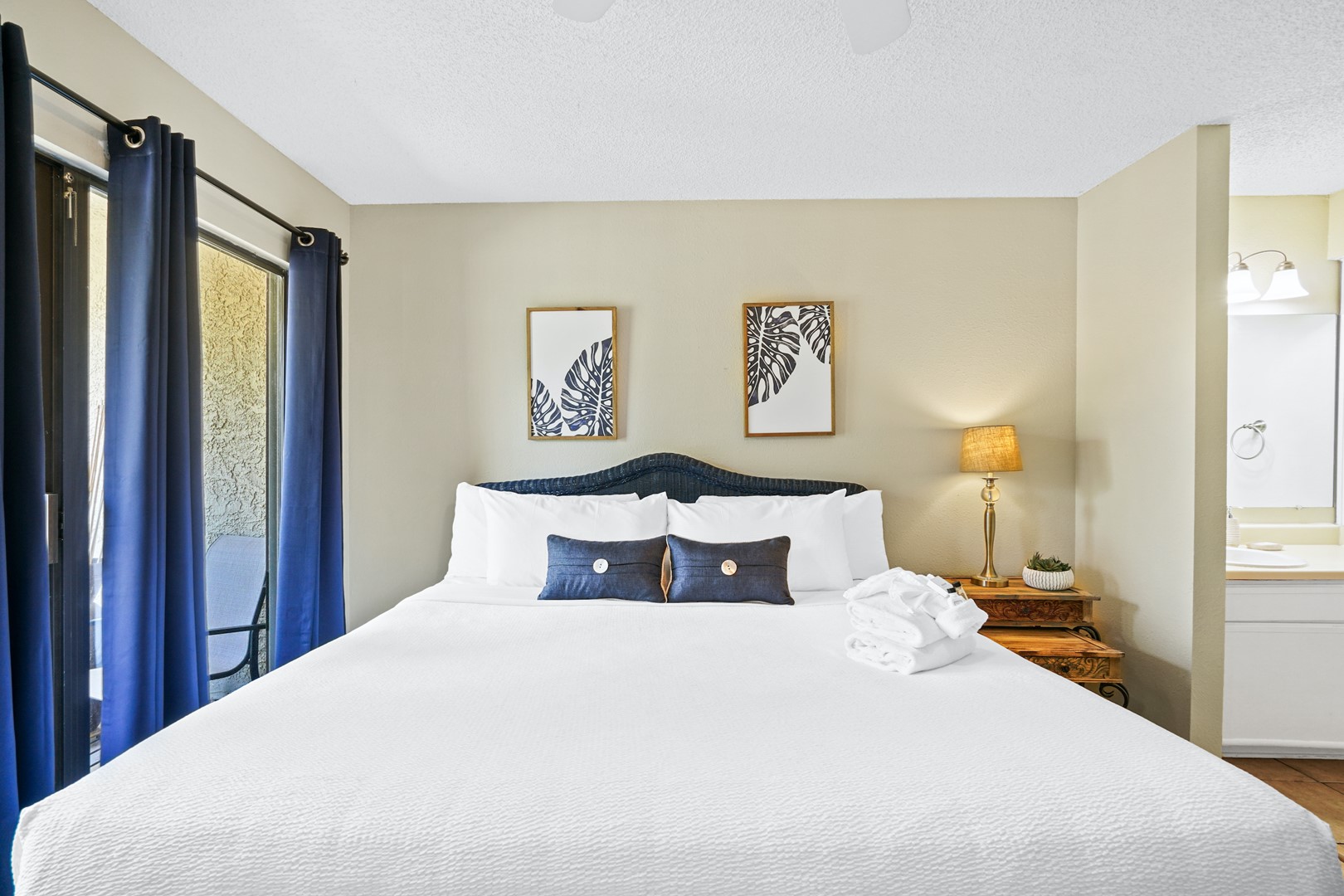 * Bedroom 1 - Private Balcony, King Bed, TV, En Suite Bathroom