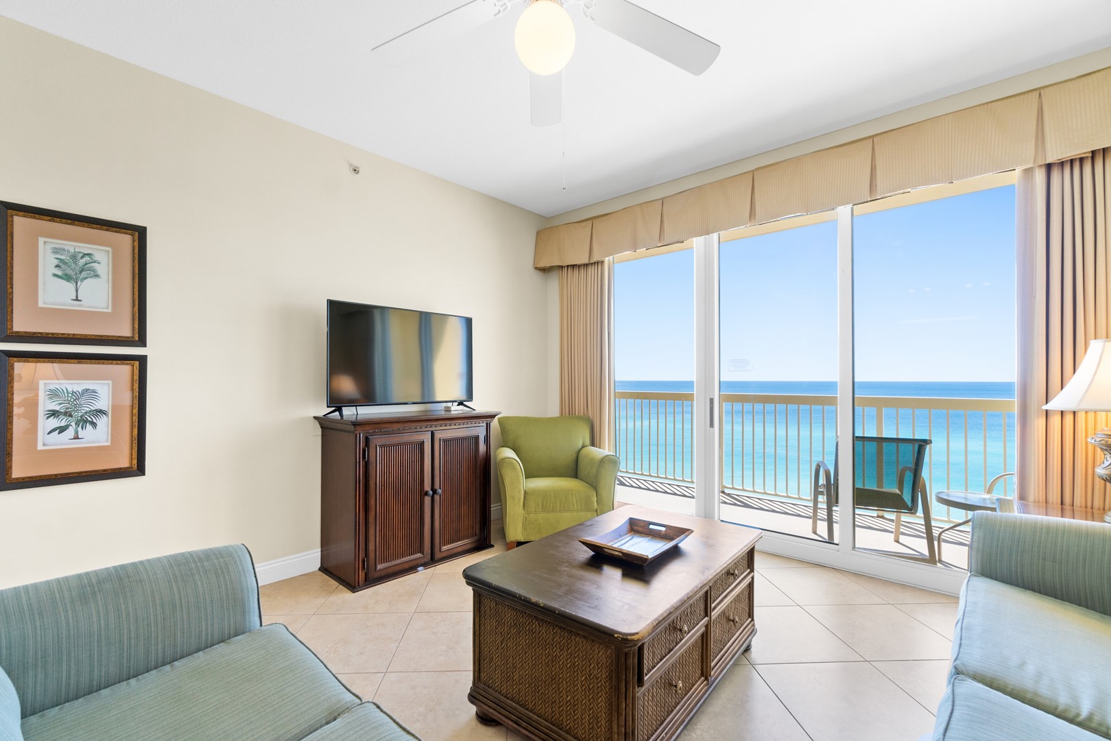 * Living Area with Gulf View, 50" TV