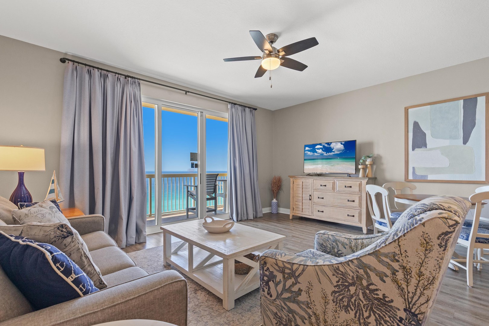 Calypso Resort Towers rental 1403W located in Panama City Beach, FL by Panhandle Getaways is a 1 bedroom plus bunk area, 2 bathroom beachfront vacation home. Free activities daily included with your stay.