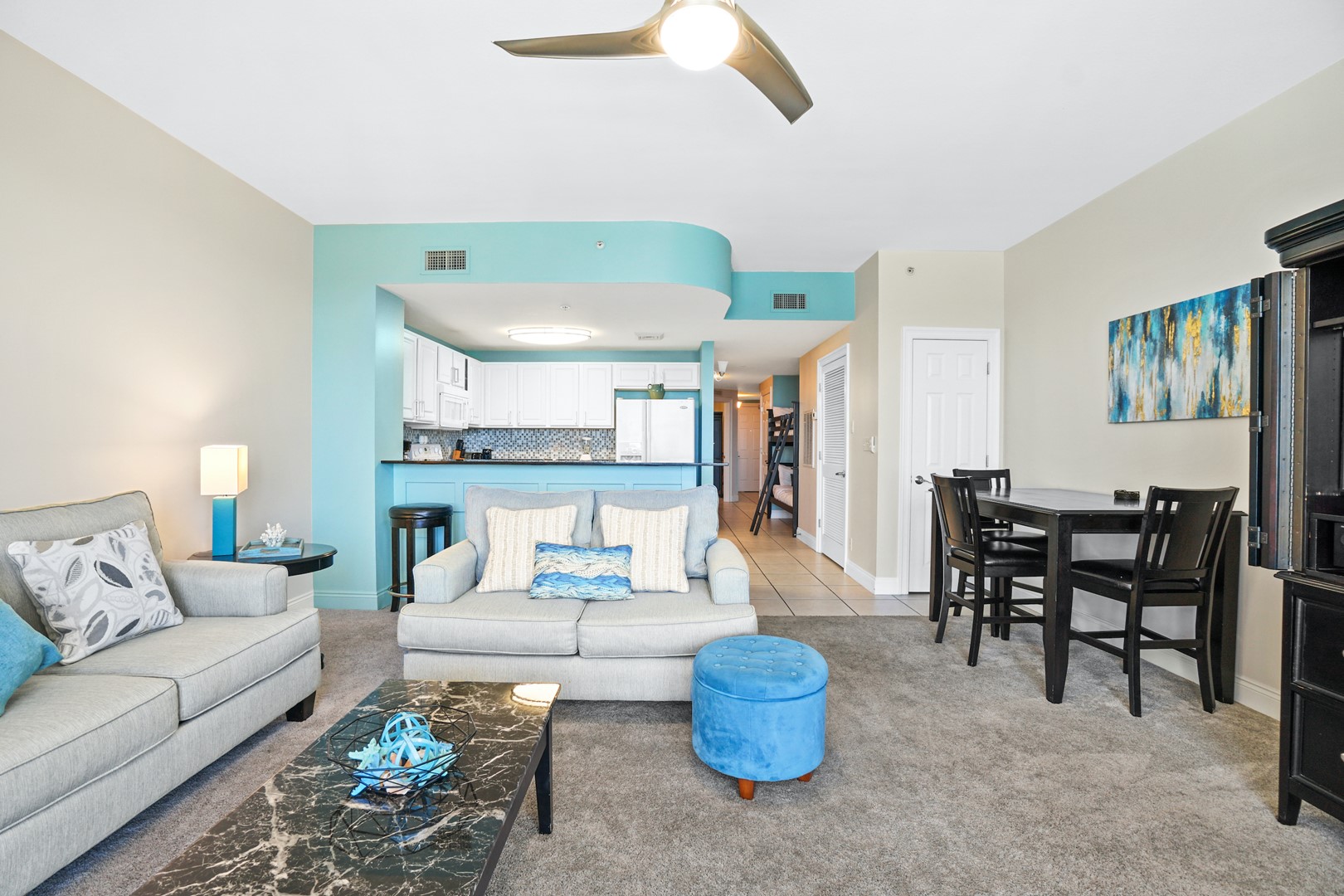 Calypso Resort rental 1507E in Panama City Beach, FL by Panhandle Getaways is a 1 bedroom plus bunk area, 2 bathroom direct beachfront vacation home complete with all of the conveniences of home.