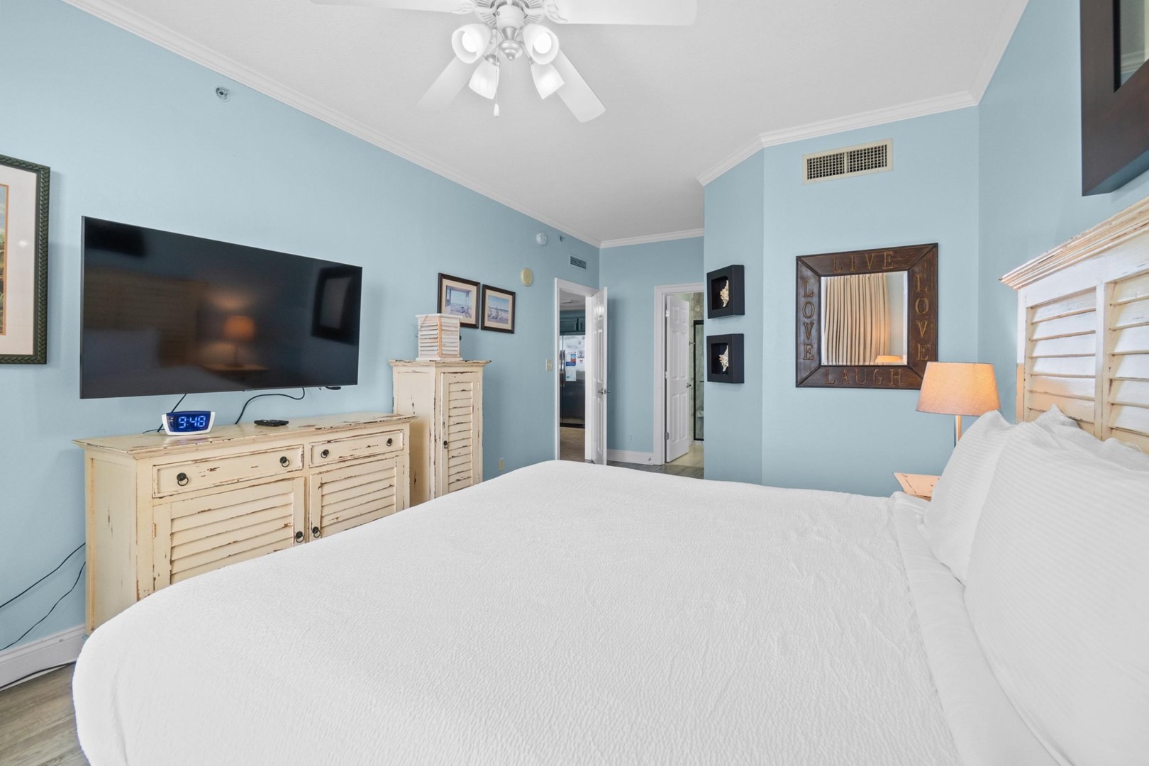 * Bedroom 1 - Gulf View, King Bed, TV, Balcony Access, En Suite Bathroom