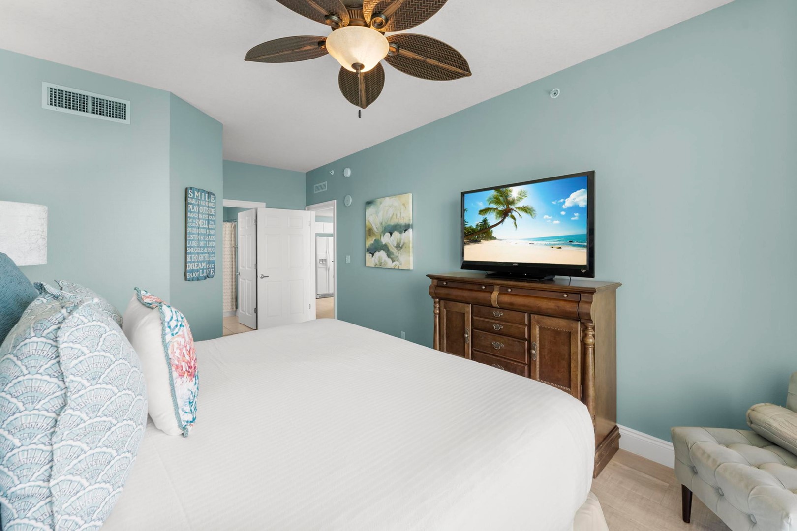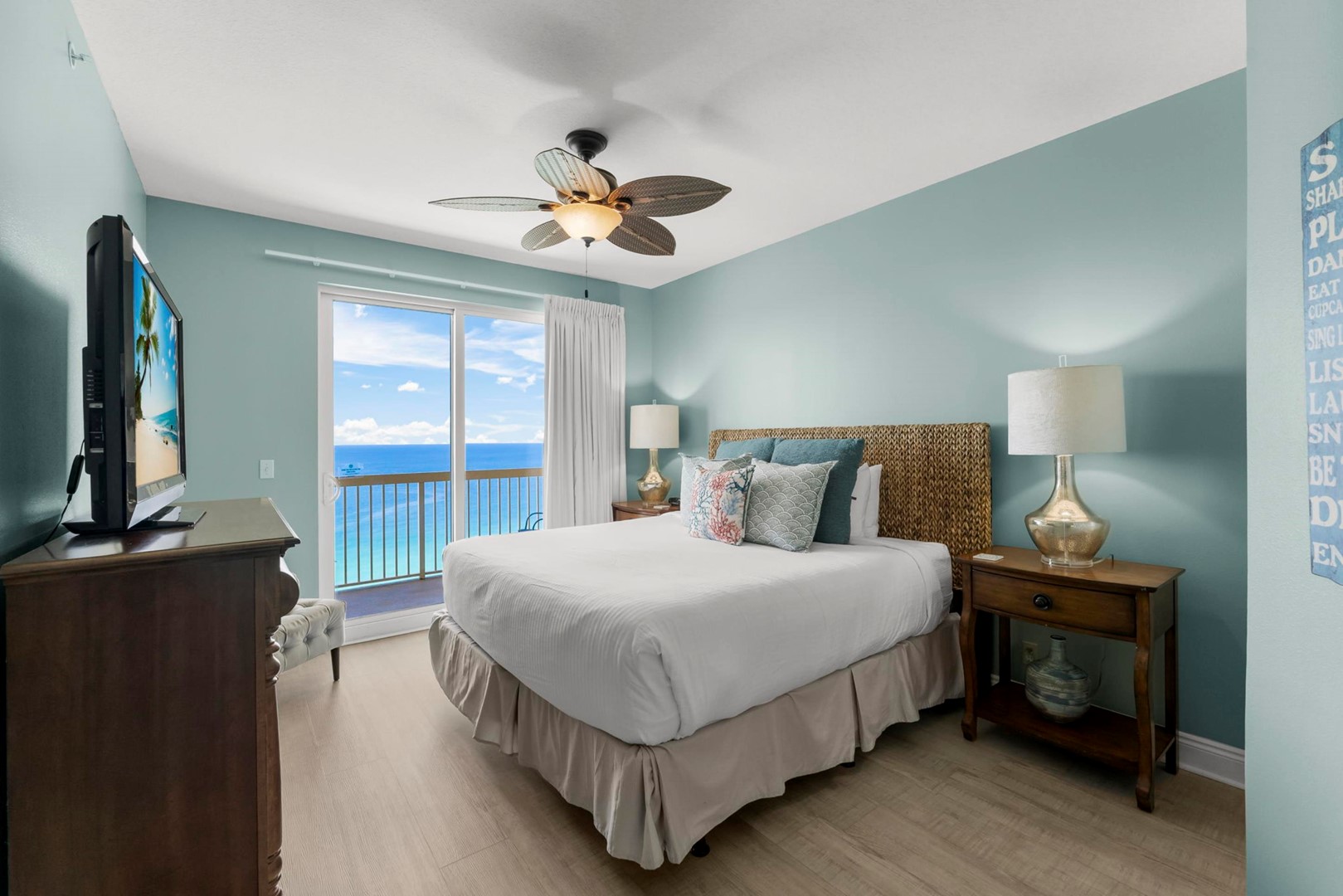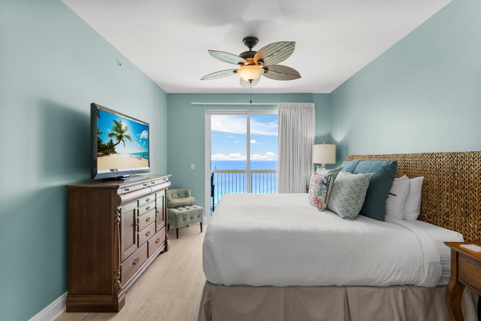 * Bedroom 1 - Gulf View, King Bed, TV, Balcony Access, En Suite Bathroom