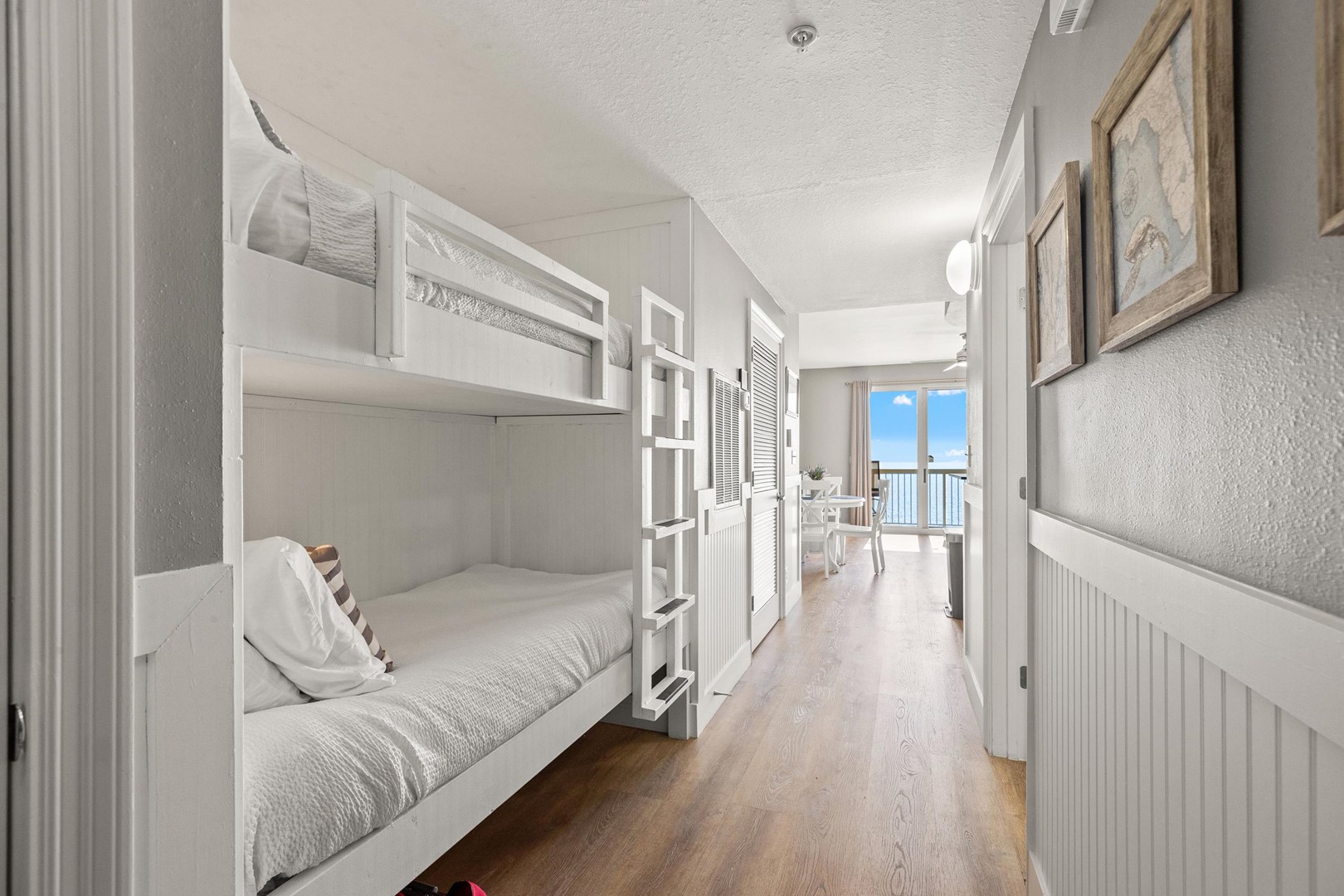 Welcome to Calypso Resort 2007W, a beautifully remodeled 1-bedroom plus bunk, 2-bathroom beachfront condo in Panama City Beach, Florida by Panhandle Getaways. Perfect for couples or small families, this coastal retreat features a bright open living area with Gulf views, a fully equipped kitchen with breakfast bar, and a private balcony overlooking the turquoise waters. This Gulf-front escape combines all the comforts of home with family-friendly resort amenities.