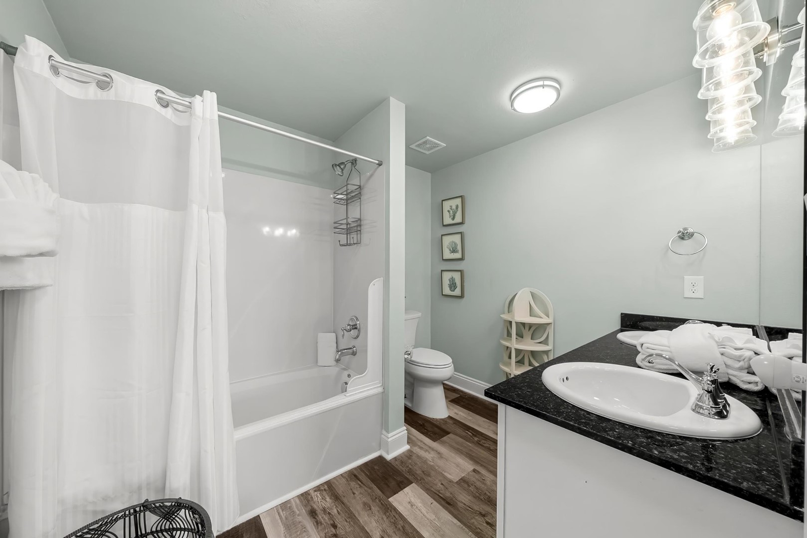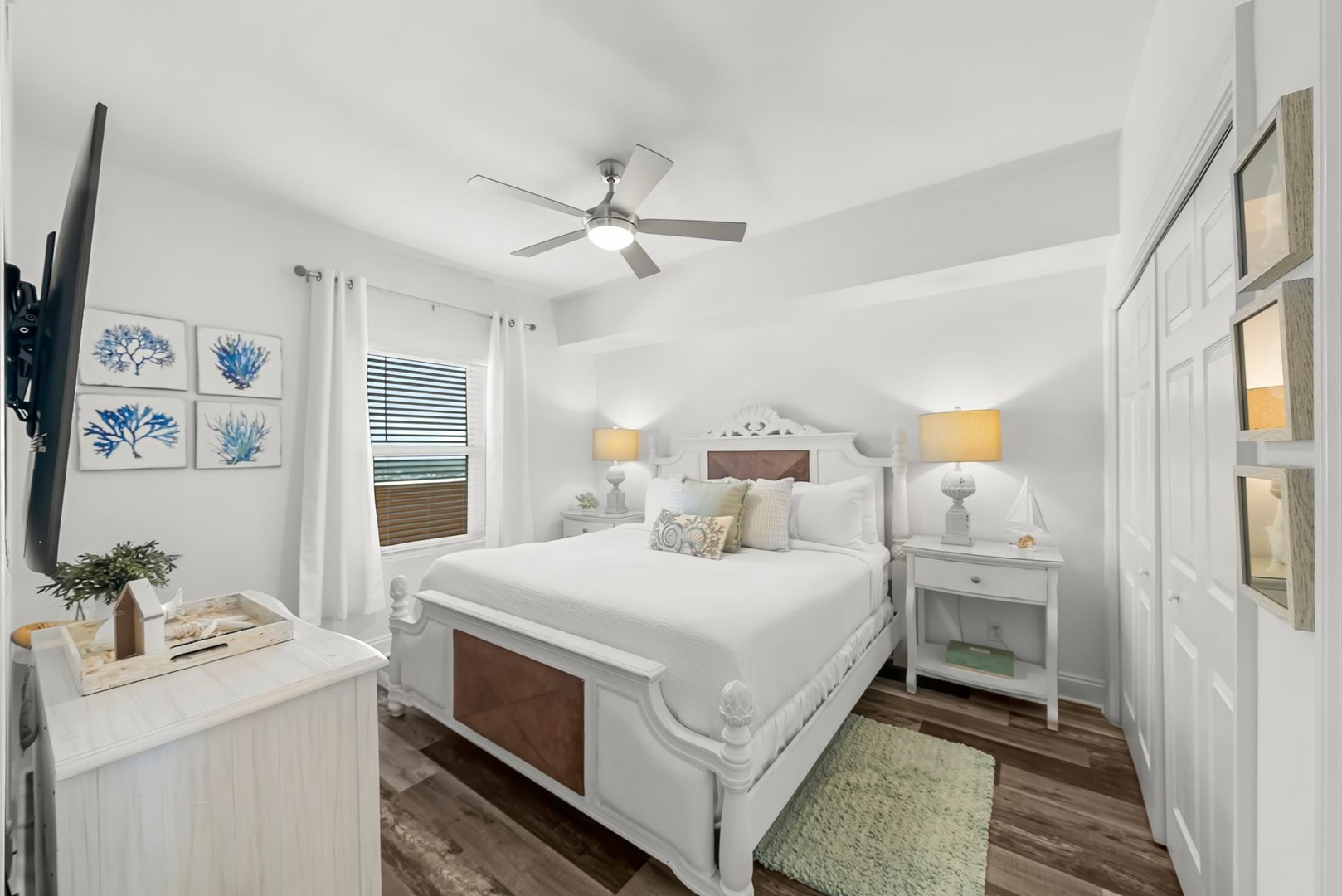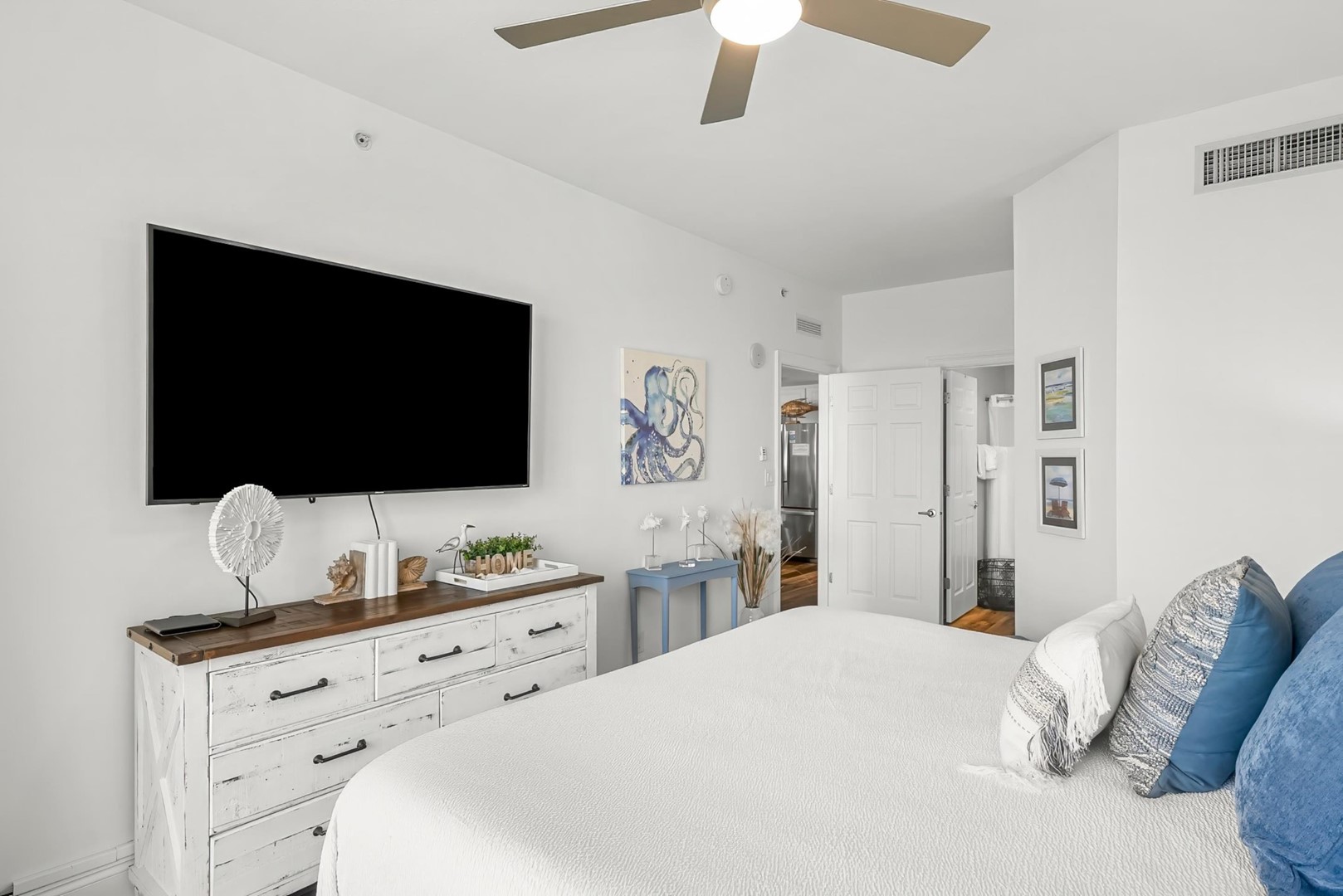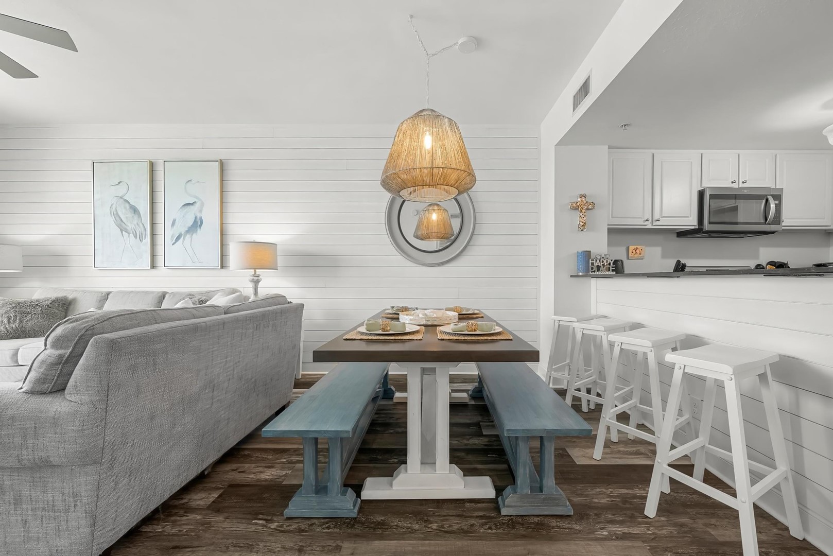 Coastal dĂ©cor done by our designer including new furnishings & light fixtures that are fresh and modern- beckoning one to unpack and stay a while.Â