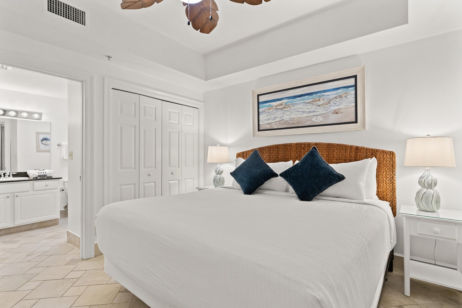 * Bedroom - King Bed, 55" TV, En Suite Bathroom
