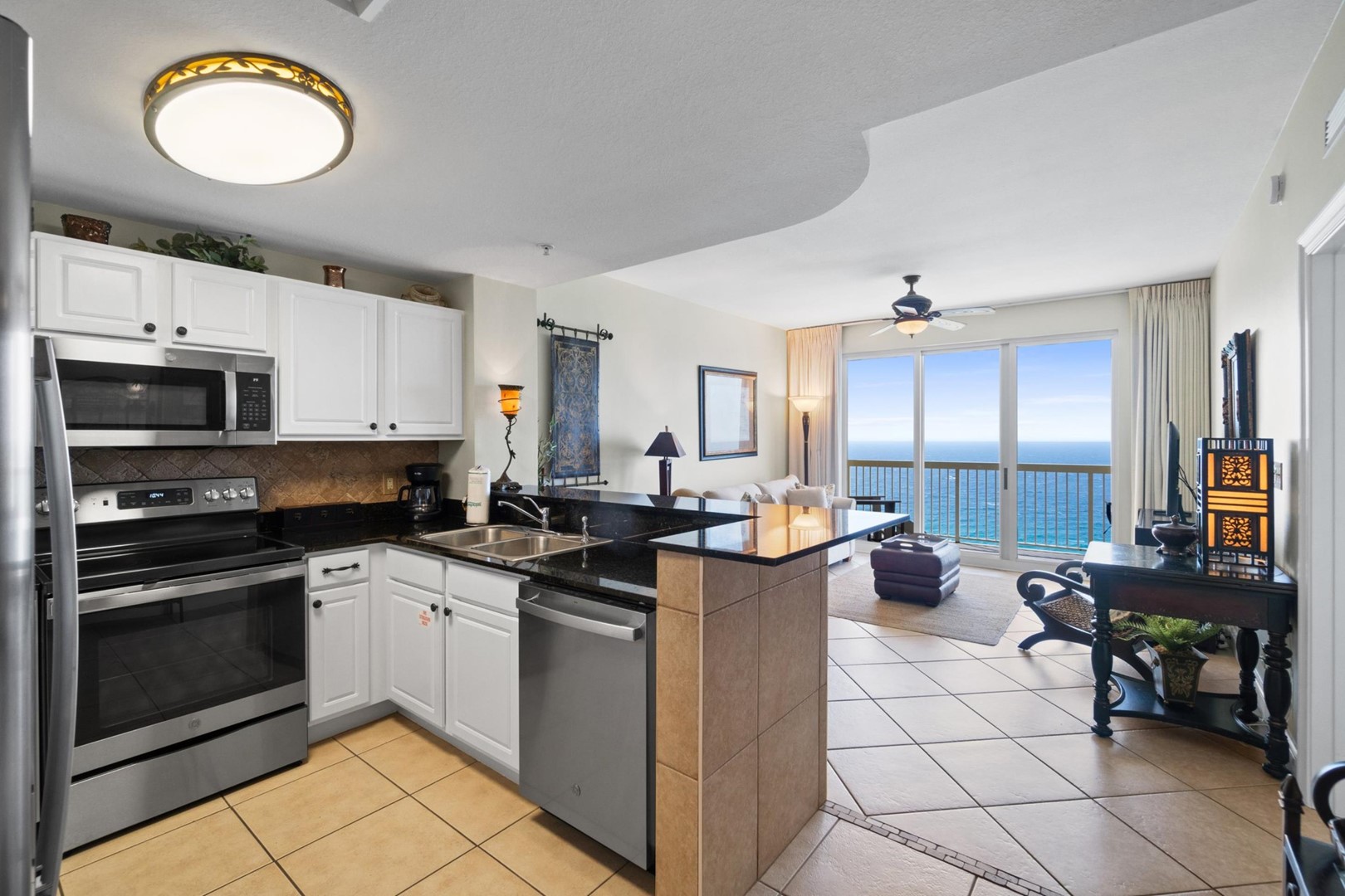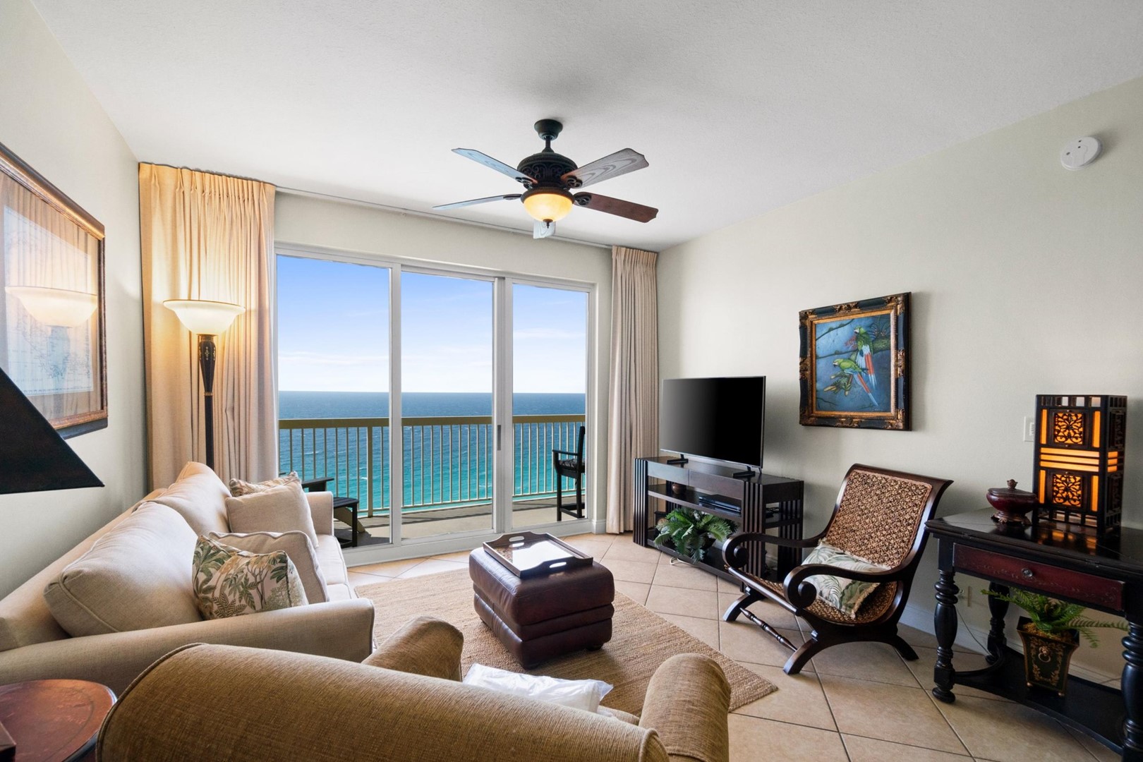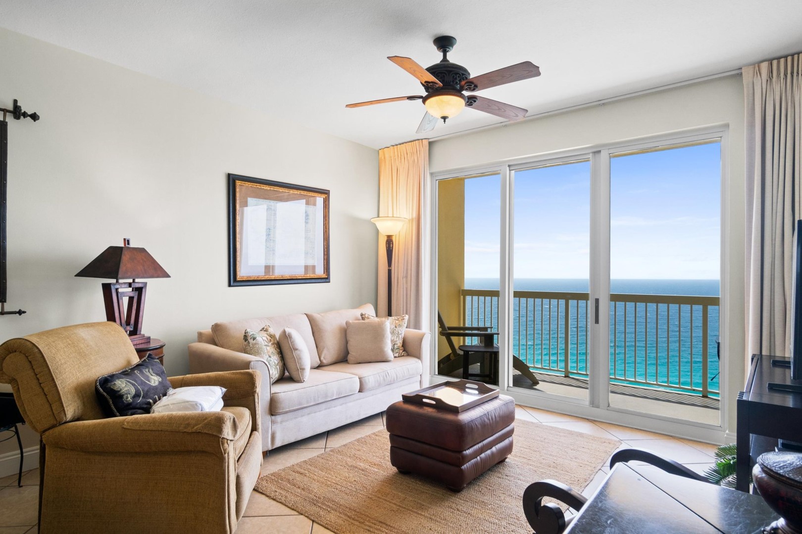 * Living Area - Gulf View, TV, Balcony Access