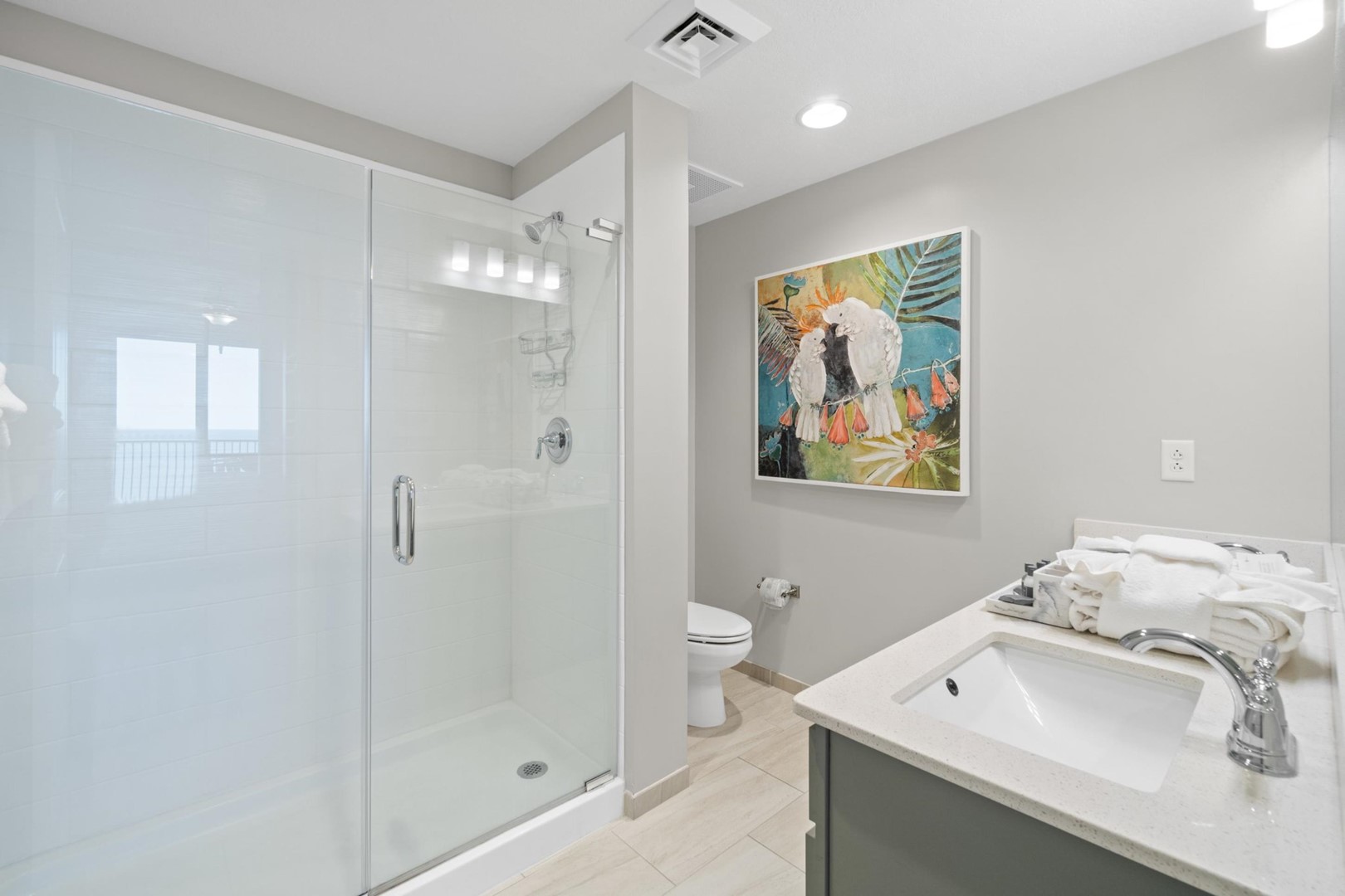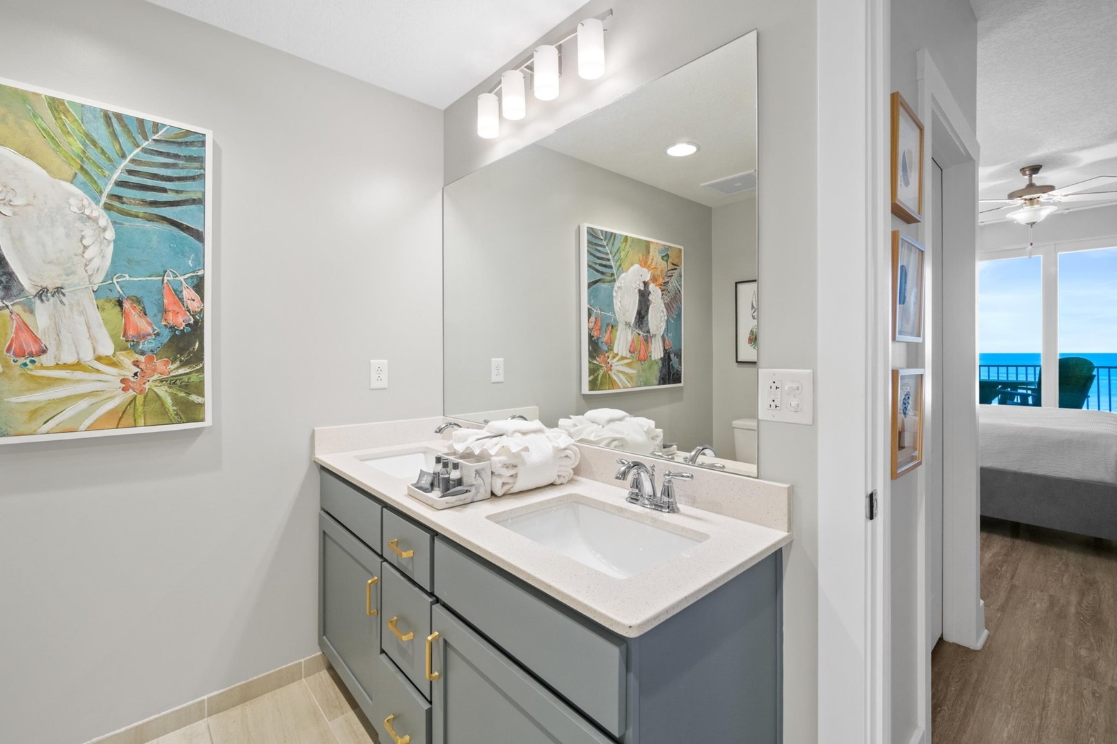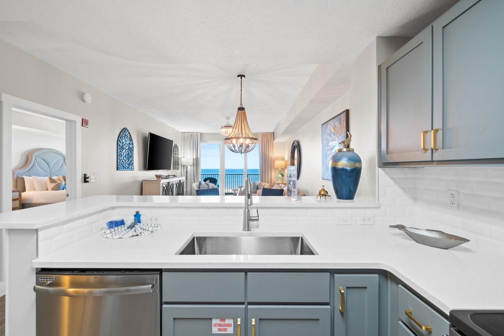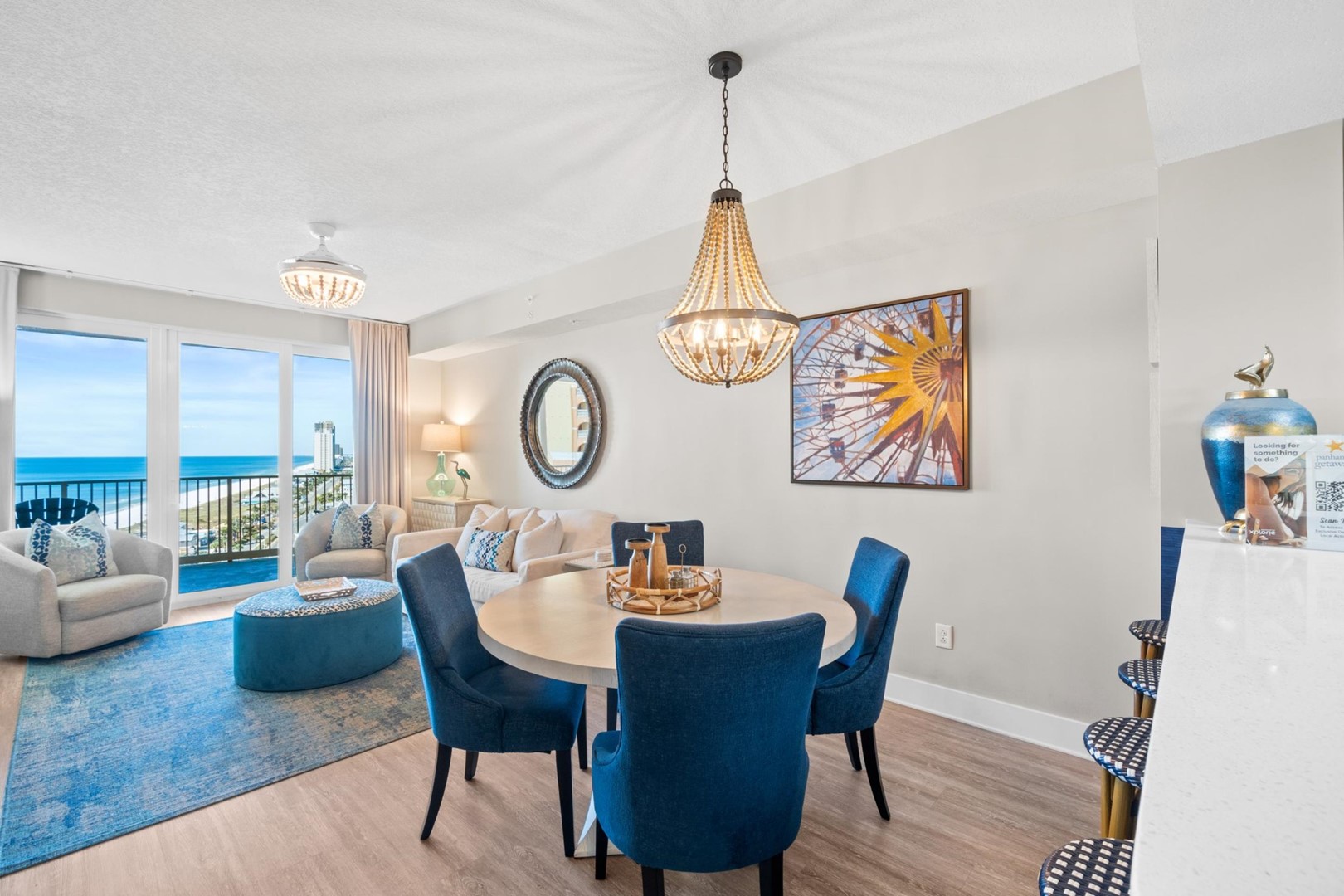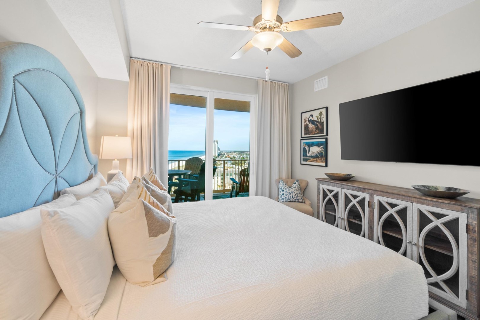* Living Area - Gulf View, 75" TV, Balcony Access