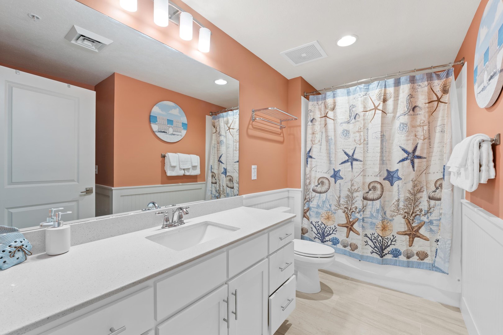 Panhandle Getaways furnishes a few essential items for guests to utilize until they can get to the grocery store. Initial Supplies include: Dishwasher soap, small washing machine powder, each bathroom has amenities (like hotel but NOT restocked) shampoo, conditioner, soap bar. One roll of toilet paper in each bathroom and one paper towel roll in the kitchen. All bed linens and towels are provided. We encourage guests to bring beach towels for use at the pool and beach.