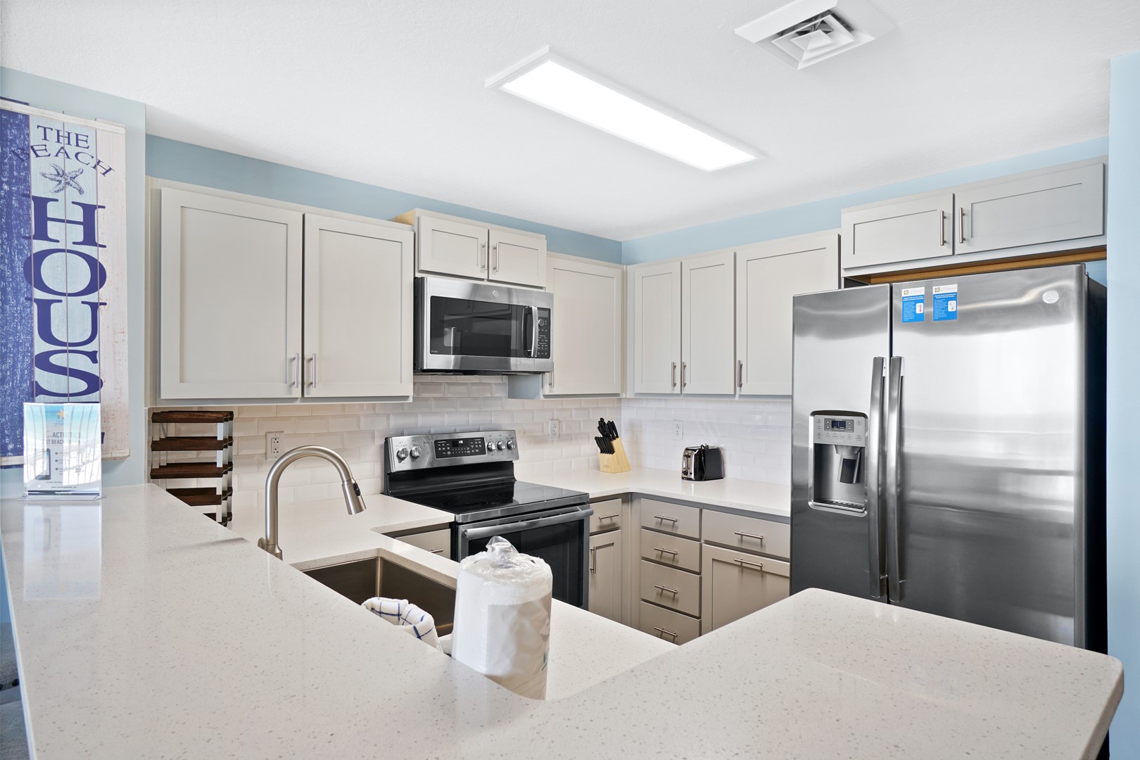 Panhandle Getaways furnishes a few essential items for guests to utilize until they can get to the grocery store. Initial Supplies include: Dishwasher soap, small washing machine powder, each bathroom has amenities (like hotel but NOT restocked) shampoo, conditioner, soap bar. One roll of toilet paper in each bathroom and one paper towel roll in the kitchen. All bed linens and towels are provided. We encourage guests to bring beach towels for use at the pool and beach.