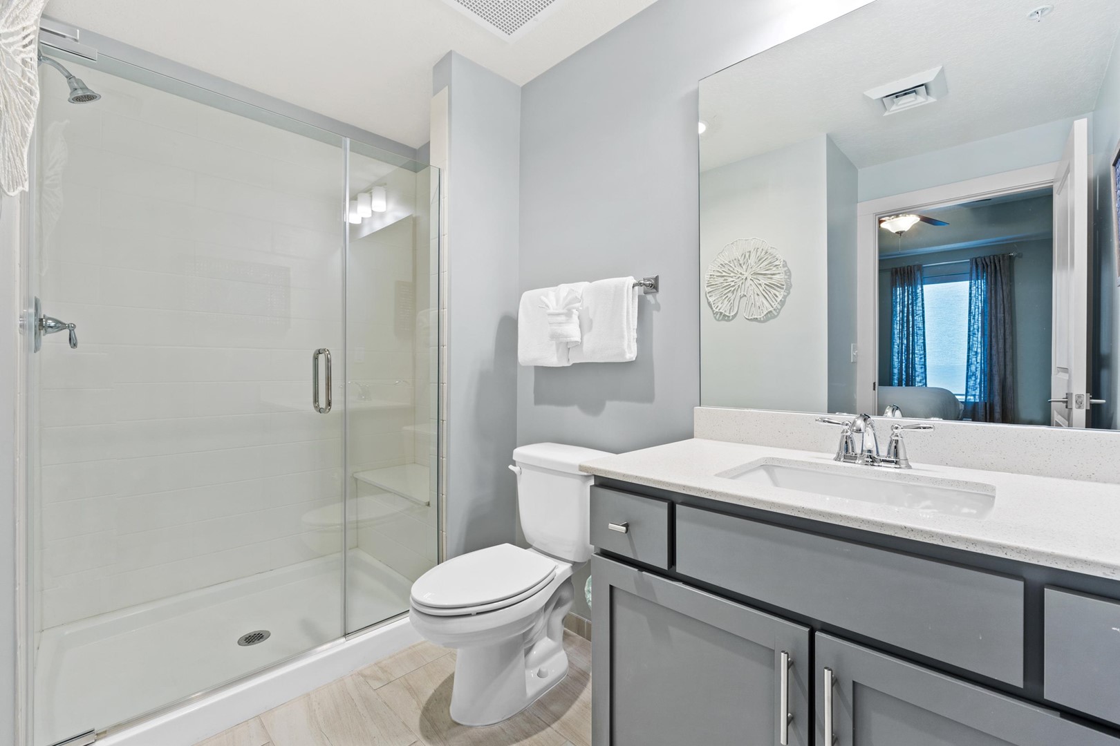 Panhandle Getaways furnishes a few essential items for guests to utilize until they can get to the grocery store. Initial Supplies include: Dishwasher soap, small washing machine powder, each bathroom has amenities (like hotel but NOT restocked) shampoo, conditioner, soap bar. One roll of toilet paper in each bathroom and one paper towel roll in the kitchen. All bed linens and towels are provided. We encourage guests to bring beach towels for use at the pool and beach.