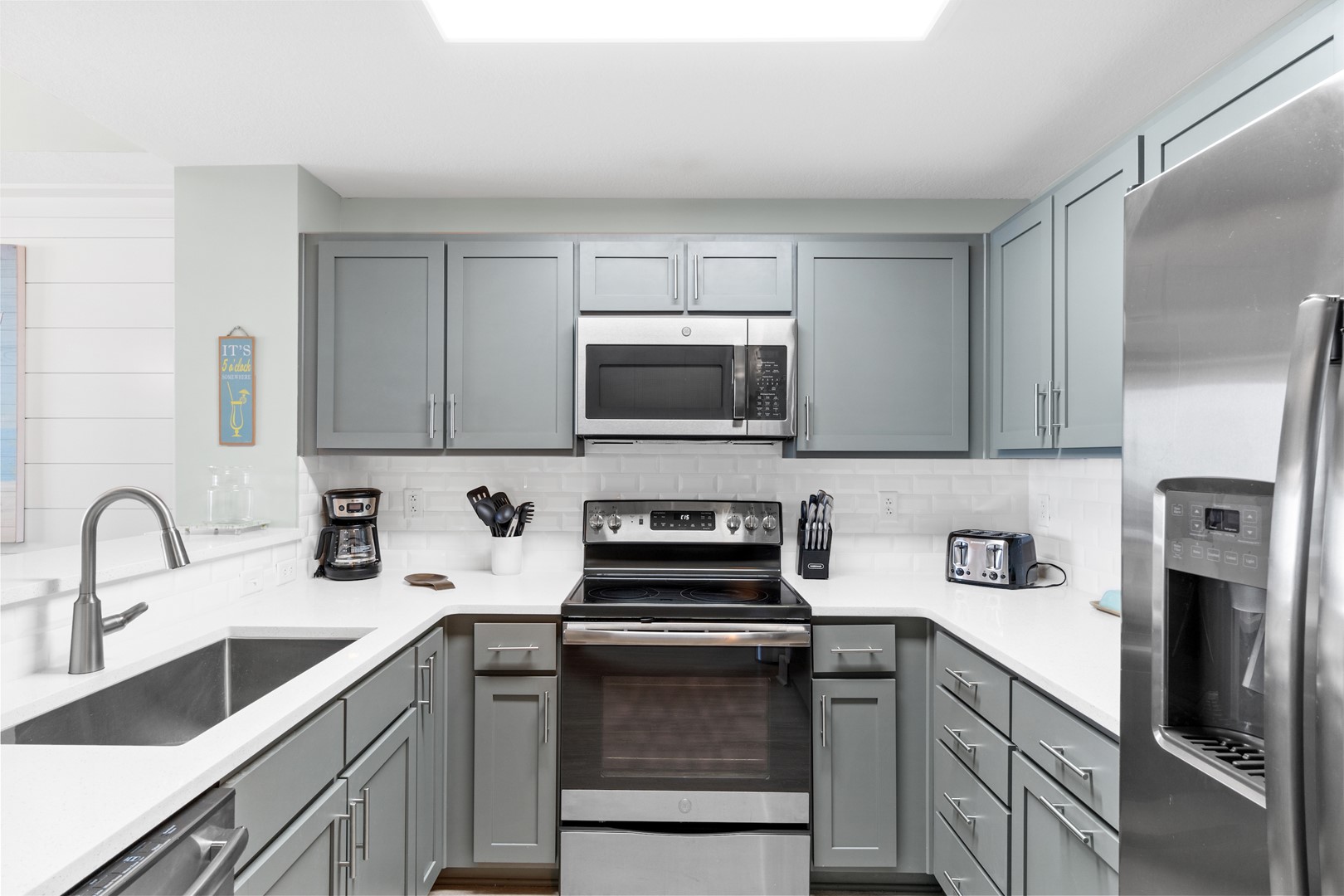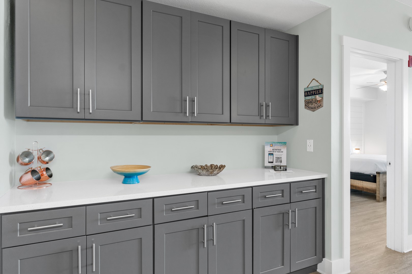 Panhandle Getaways furnishes a few essential items for guests to utilize until they can get to the grocery store. Initial Supplies include: Dishwasher soap, small washing machine powder, each bathroom has amenities (like hotel but NOT restocked) shampoo, conditioner, soap bar. One roll of toilet paper in each bathroom and one paper towel roll in the kitchen. All bed linens and towels are provided. We encourage guests to bring beach towels for use at the pool and beach.