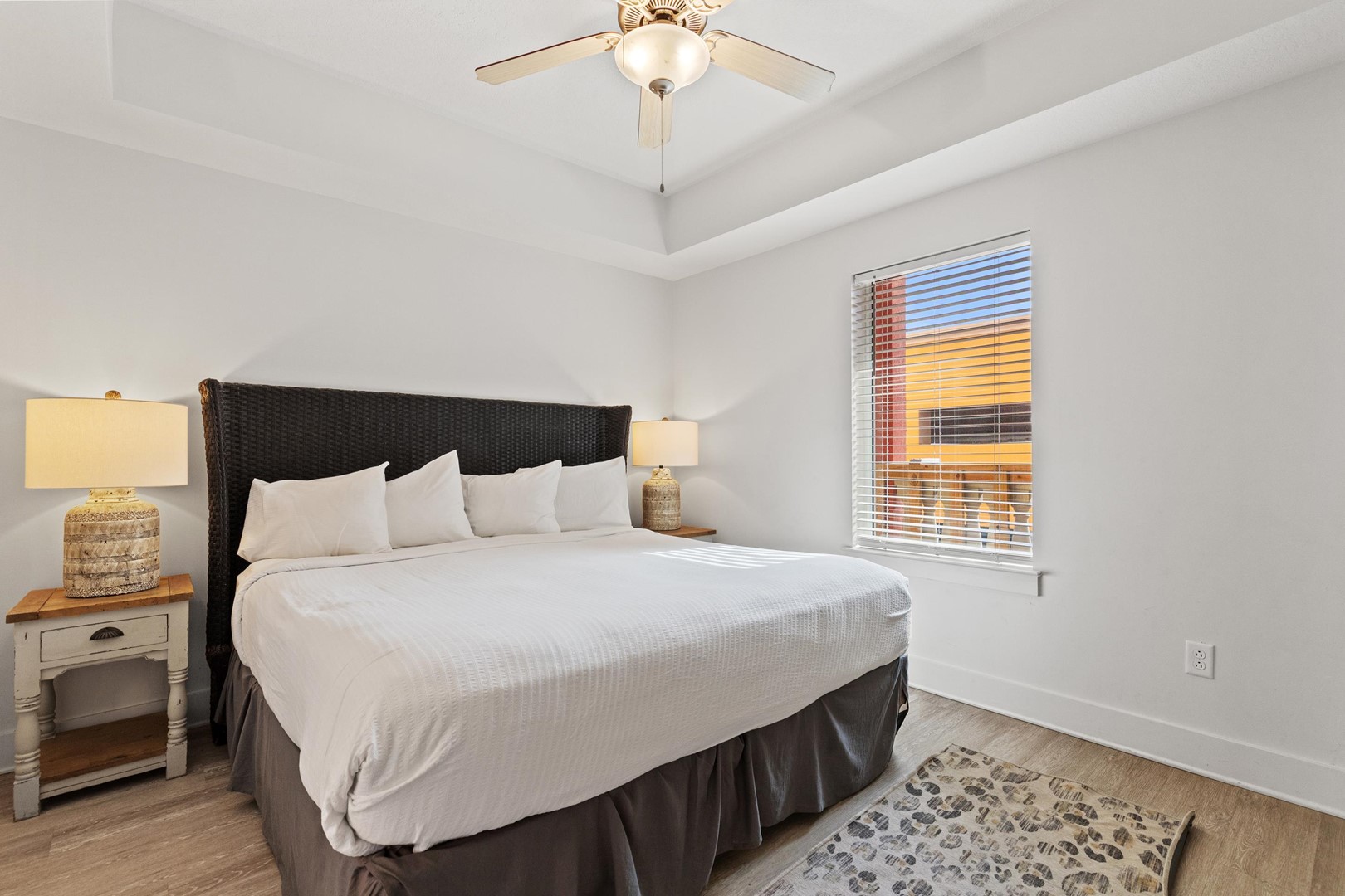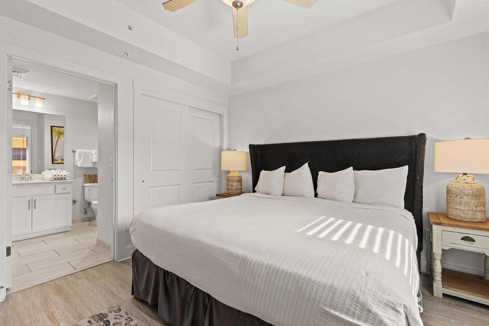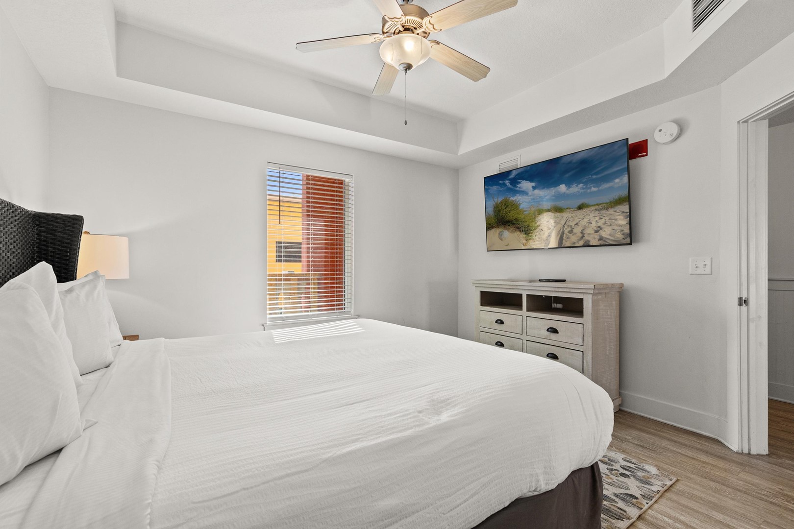 * Bedroom 1 - King Bed, 75" Smart TV, Balcony Access, En Suite Bathroom