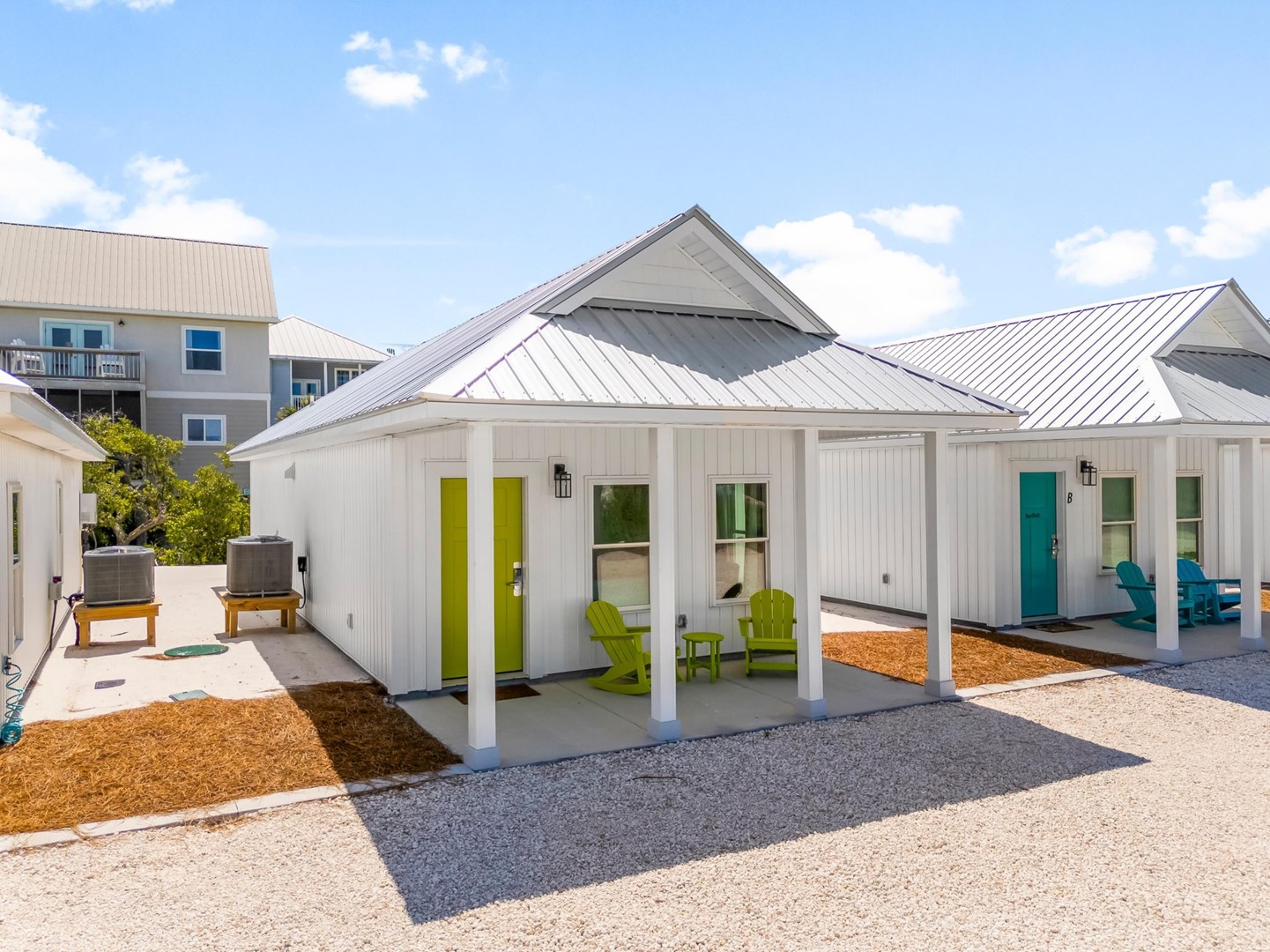 This pet-friendly vacation home is actually 6 side-by-side homes that can accommodate a total of 29 guests. Please see the features for each home below.