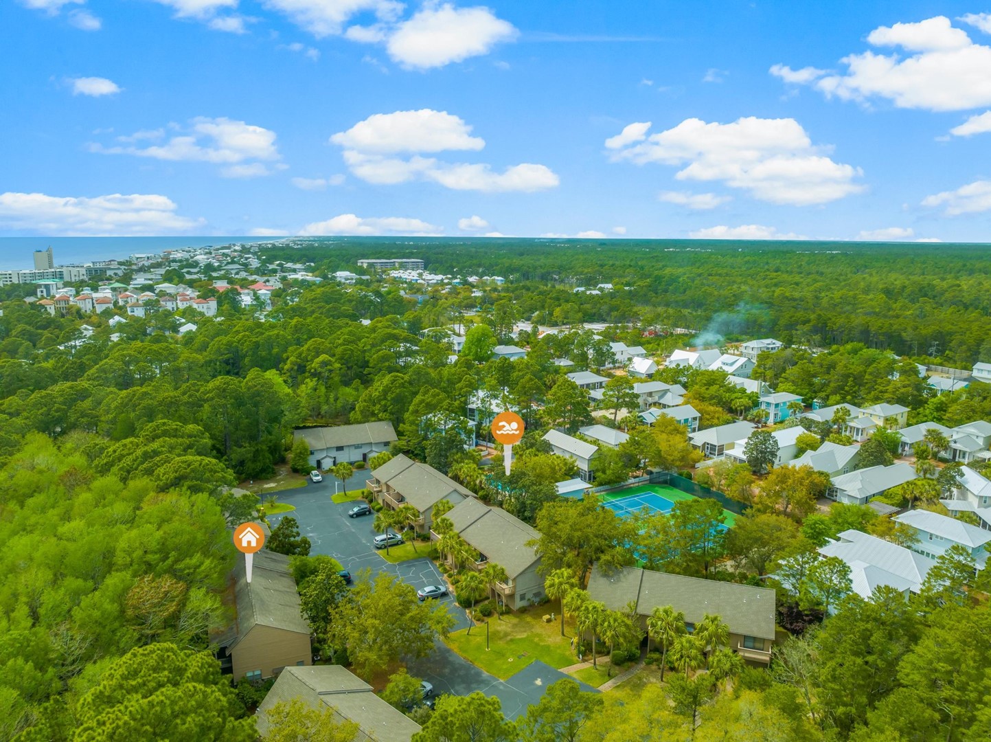 Cypress Sanctuary at Seagrove, located in Cassine Gardens on 30A located in Santa Rosa Beach, FL by Panhandle Getaways is a 2 bedroom, 1.5 bathroom vacation rental complete with all of the conveniences of home. 2 Bikes and Round of Golf Daily during your stay.