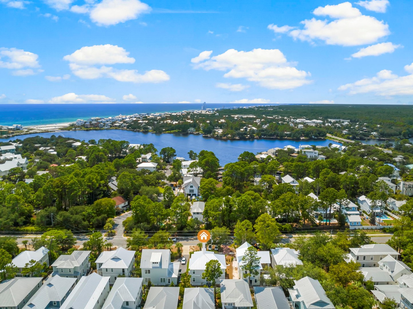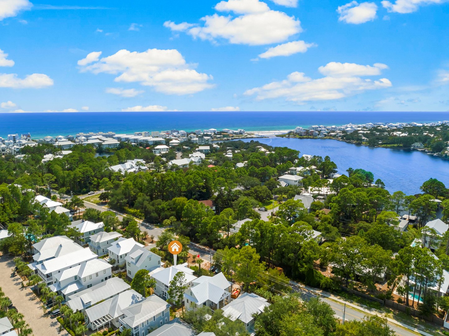 Cottages at Eastern Lake beach house rental, Sea La Vie, located in Santa Rosa Beach, FL by Panhandle Getaways is a 5 bedroom, 4.5 bathroom vacation home complete with all of the conveniences of home. Golf Cart and 4 bikes Included with your stay.
