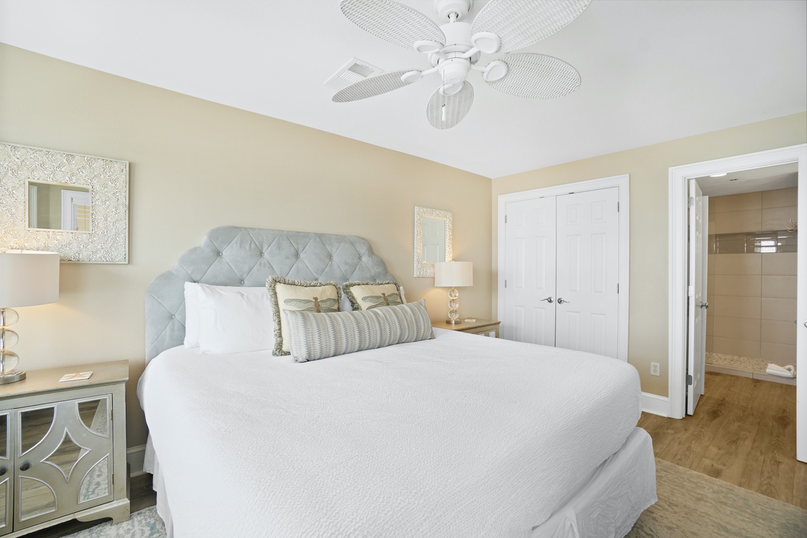 This condo was located on the beautiful Crystal Beach! The views were incredible. Master Bedroom was very luxurious.Brittan W. - Posted: 7/25/2018